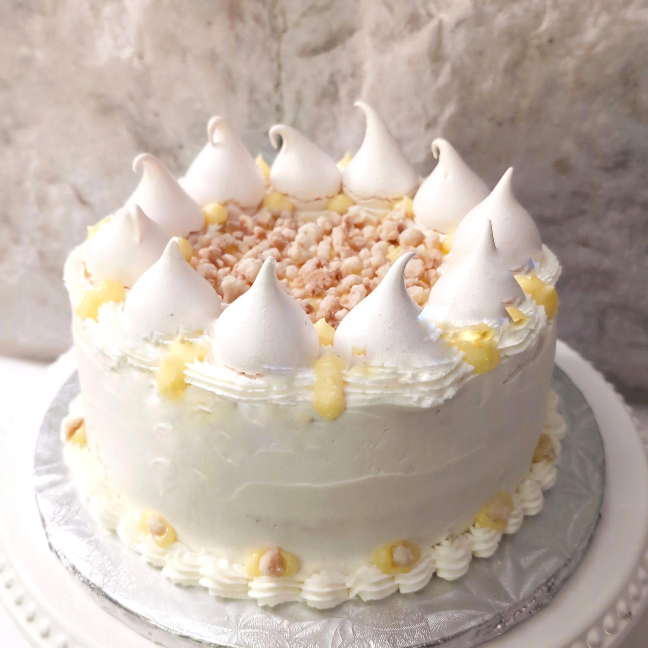 My friend is always doing stuff for others so I made him the Lemon Mess cake from the Crumbs and Doilies baking book. Lemon cake, filled with lemon buttercream, lemon curd, and pie crust crumble pieces. Topped with more buttercream, baked meringue drops and some more curd and pie crumble.