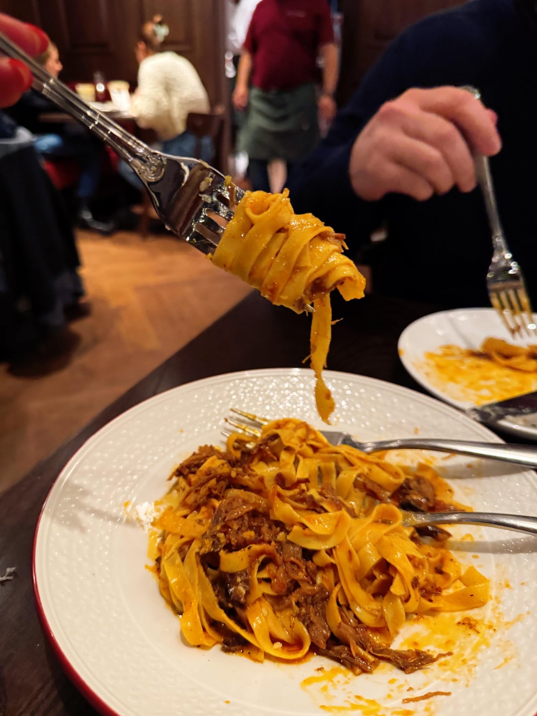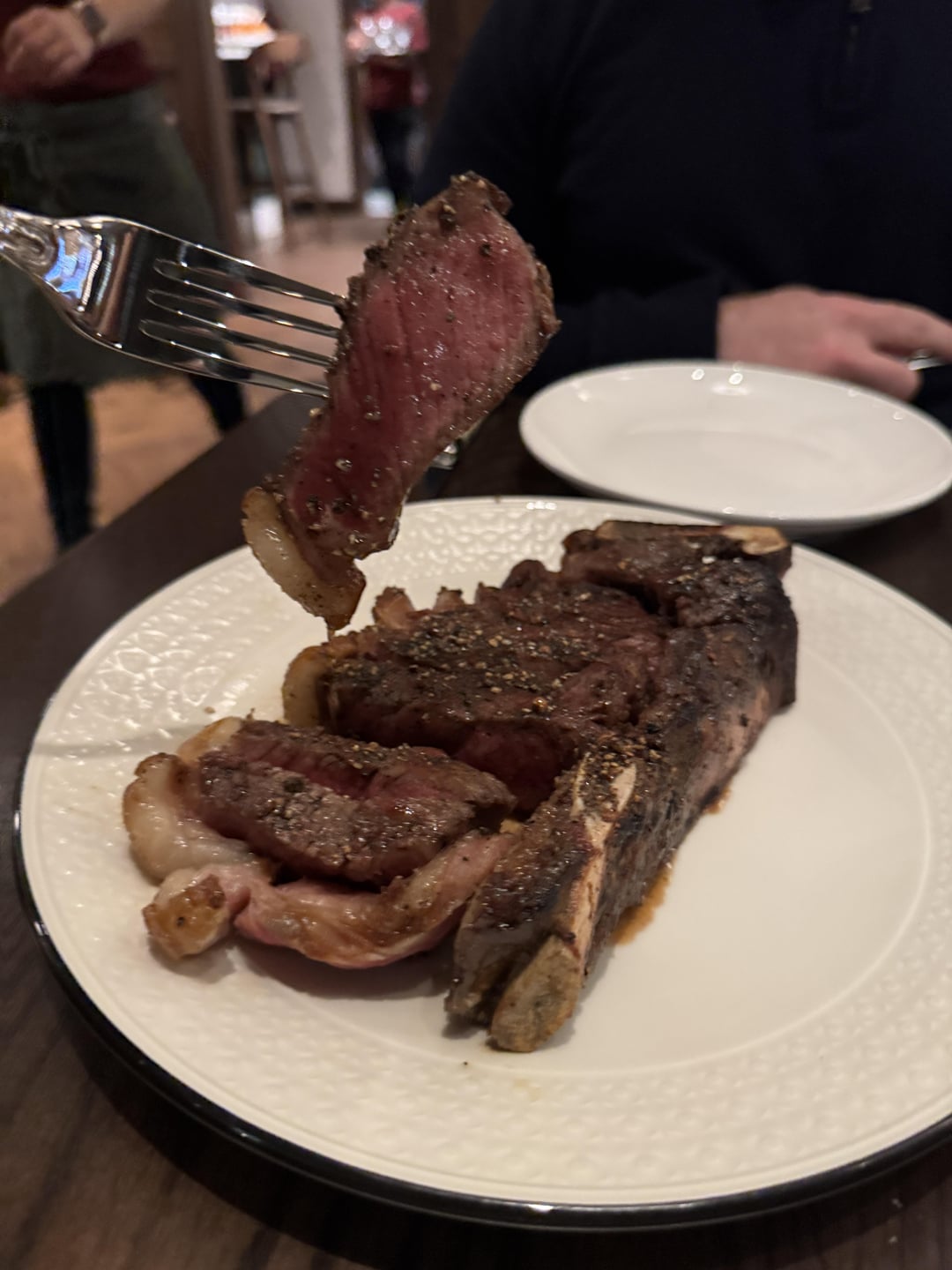 Standouts: prosciutto di parma and bufalo mozzarella made a perfect bite with the thicker bread he makes that looked like the base of his Roman pizzas; the oxtail tagliatelle was rich, meaty and had some delightful textural bites (maybe rendered crispy fat from the meat but I can’t be sure); bone-in NY strip with honey and black pepperand the cherry sorbetti.