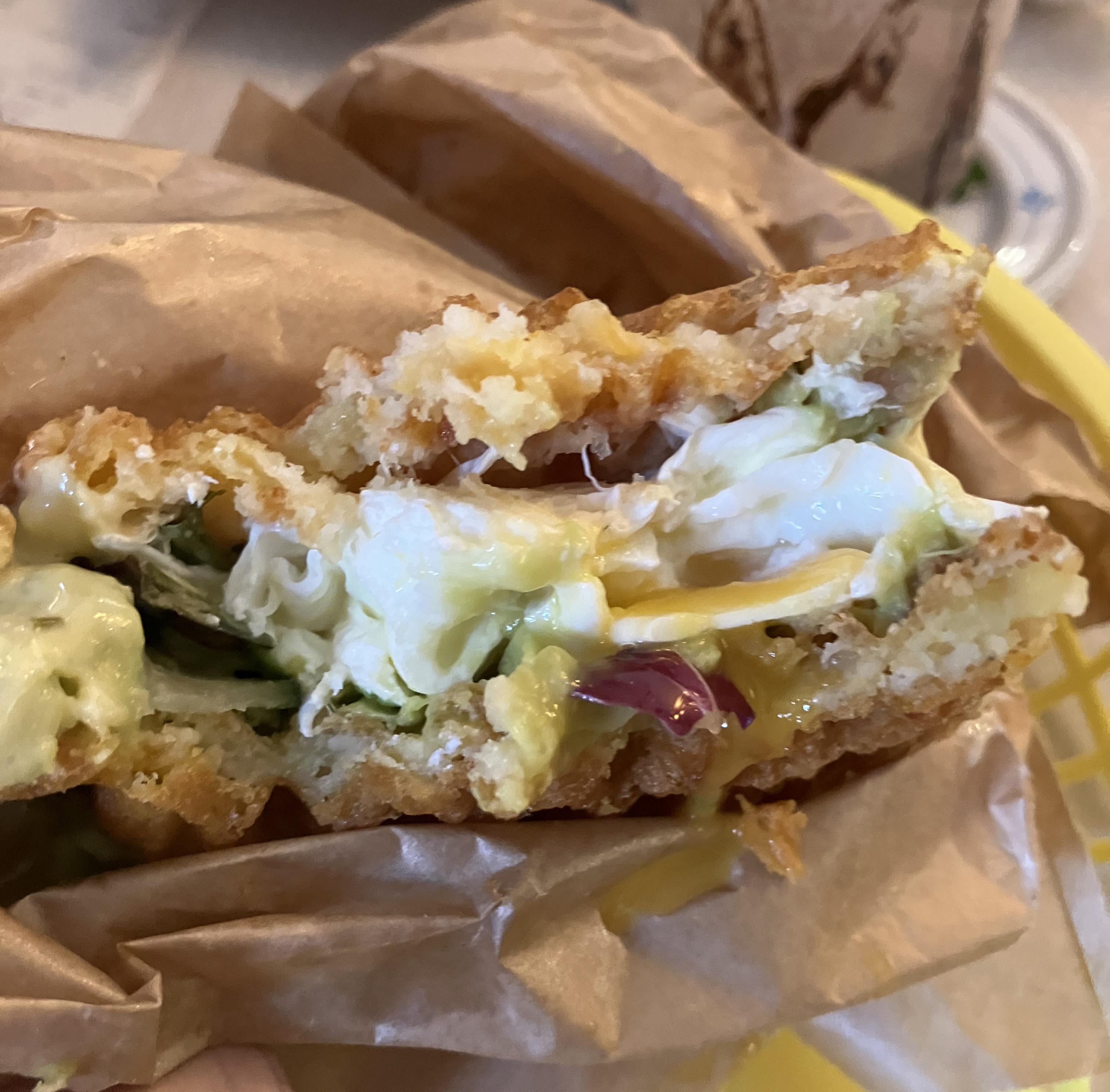 I had the vegetarian option of avocado instead of ham, but I believe that a ham and avocado combination would be the holy grail of food so I'm going to try to make my own version with a vegetarian ham substitute.