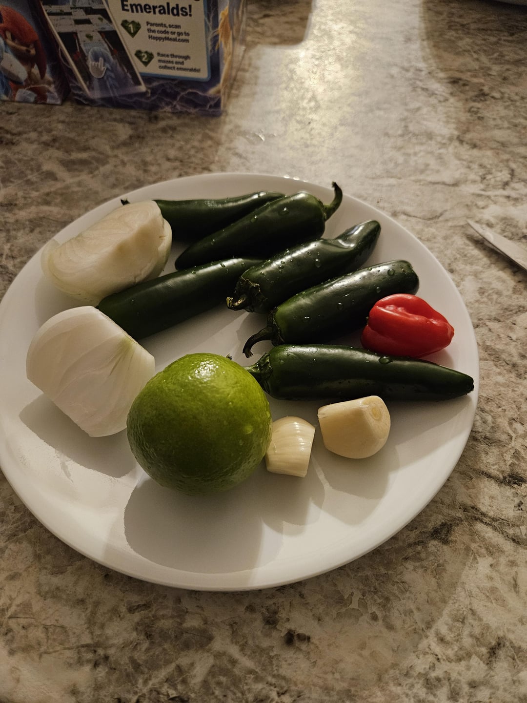 6 Jalapeños1 Habanero1 Onion2 Garlic cloves.75 tsp of saltJuice of a lime. by PNGhost 2 Comments DogMom814 9 months ago That’s much more heat than I could take but it sure looks tasty, nonetheless! CityBuckets 9 months ago Gonna be tasty. Enjoy. 😎🌶️Write A CommentYou must be logged in to post a comment.
