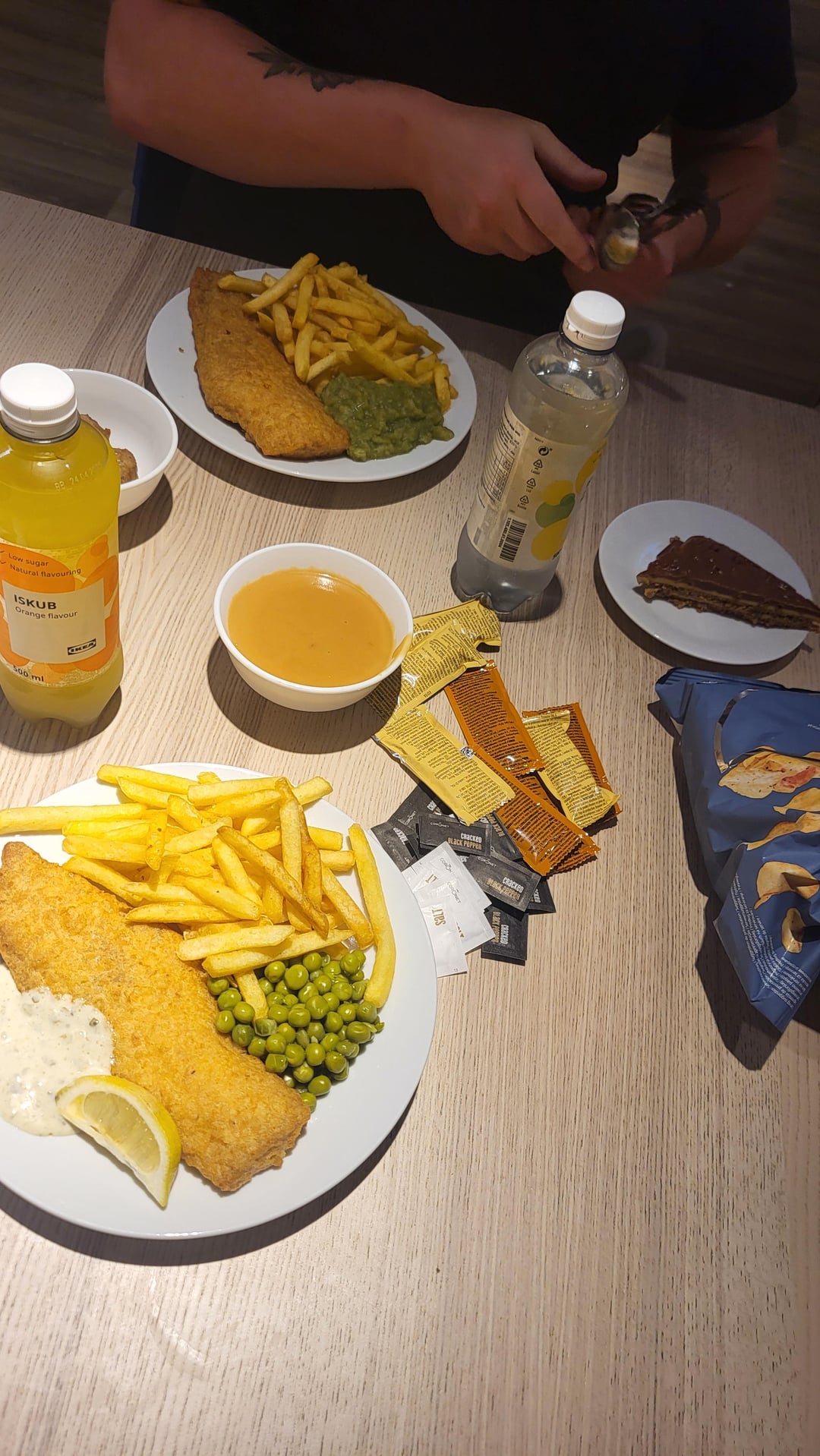 Fish and chips , meatballs and cream sauce and cake.by chawansignlady Write A CommentYou must be logged in to post a comment.