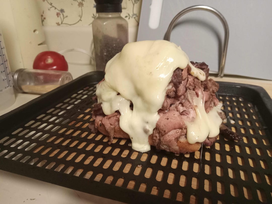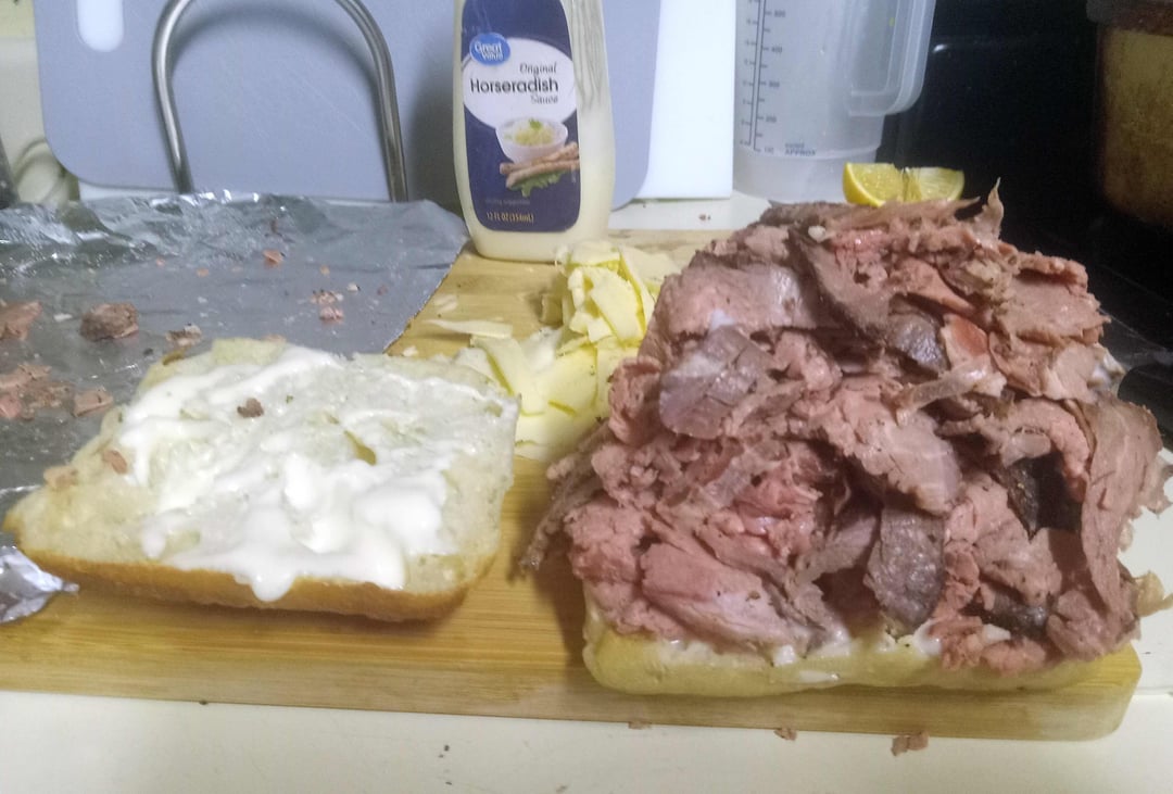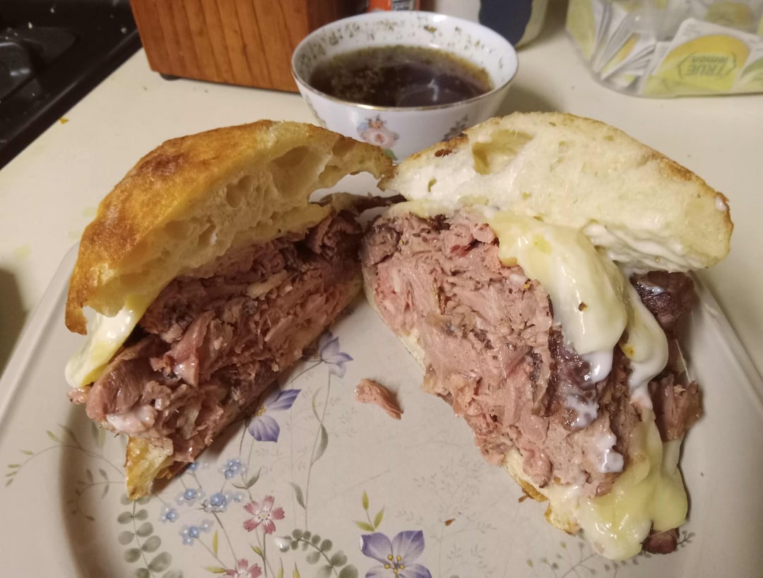Leftover Rib Roast = “The 1.3 pound French Drip” [ducking]. More in comments… if you ask or taunt me 😉