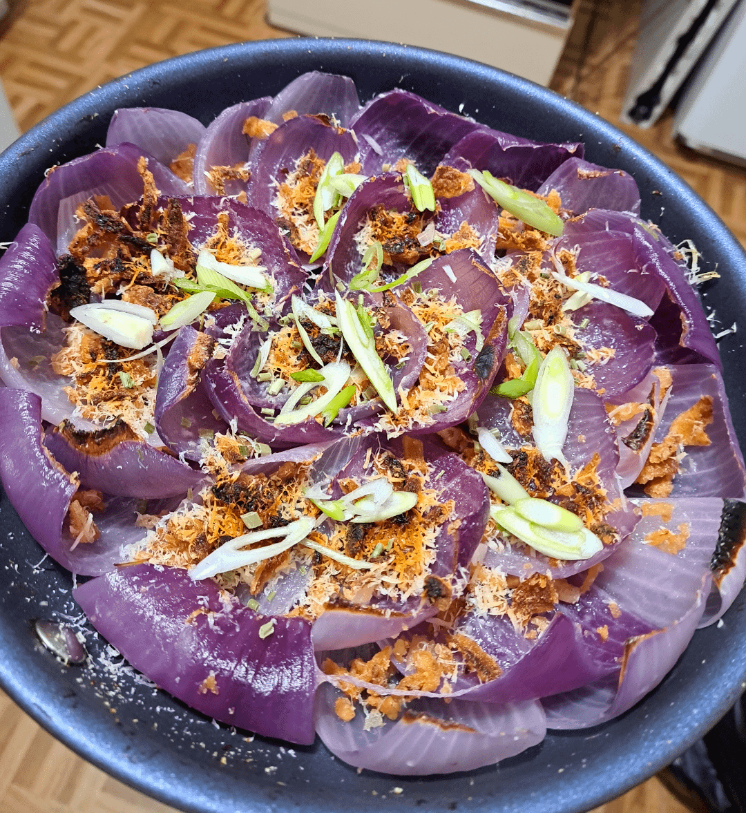 I have never seen this done with the red are you it’s always a big white onion I think I’m going to have to decline this