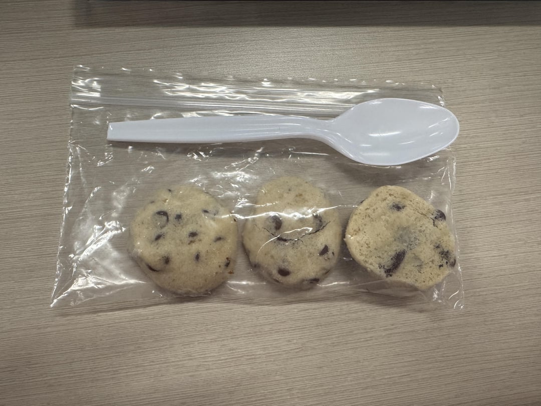 Using a plastic spoon for reference, they are small, my co worker’s wife homemade some cookies and he passed them out. It’s shortbread cookies using dark chocolate chips and a dark chocolate chunk in the middle shown in the second image…. I was thinking 50-80 calories per piece? The chocolate in the middle was pretty big(?) 😅 help..