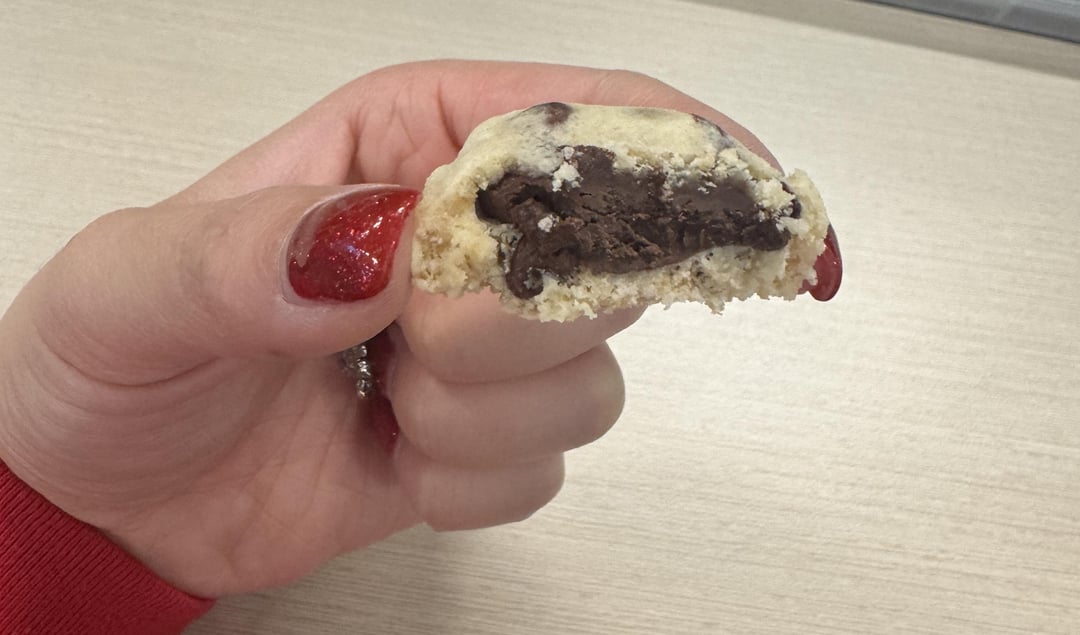Apparently the center is a dark chocolate Hershey’s kiss!