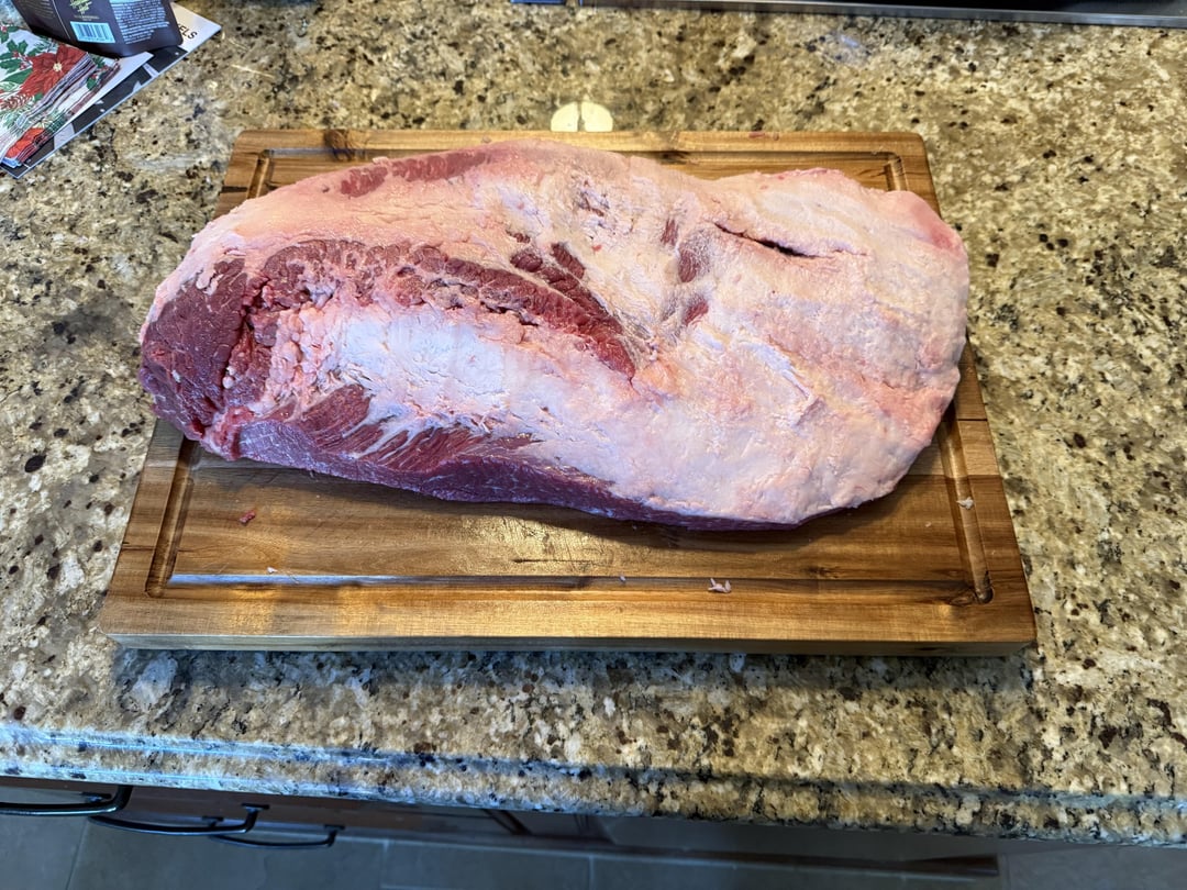 Cooking this big guy for a NYE party. Second time cooking a brisket, but the first one I bought pre-trimmed. Plan to put it on the Pit Boss tonight at 10:00pm for 6:30pm dinner tomorrow. Going to try and fit it on the top rack with a water pan underneath. Right now it is seasoned and dry brining in the fridge.