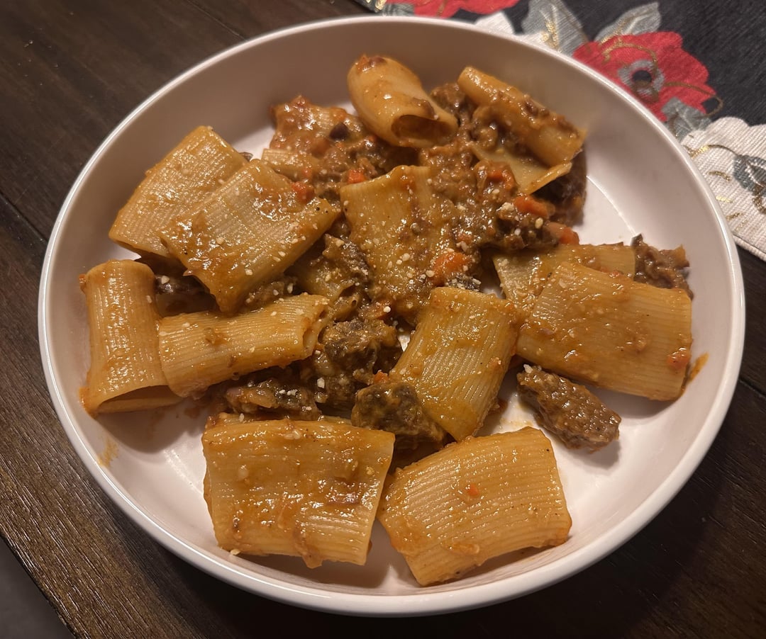 Brown chopped meat of choice on medium-high heat in a hot deep skillet. Remove. Finely dice two carrots, one yellow onion, two to three stalks celery. Add two tbsp butter to skillet and lower heat to medium. Add veggies and a generous pinch of salt. Sauté til translucent and soft. Add two tbsp tomato paste. Stir til paste darkens. Add half cup white wine. Stir till wine is mostly evaporated and thin paste remains. Lower heat to med low. Stir in two to three cups chicken or beef stock and a cup of whole milk or cream pre-whisked together (until meat is covered fully) along with two large bay leaves, a healthy amount of cracked pepper, and a shake of nutmeg. Bare simmer 2-3 hours stirring intermittently until meat is very tender and sauce has thickened.
