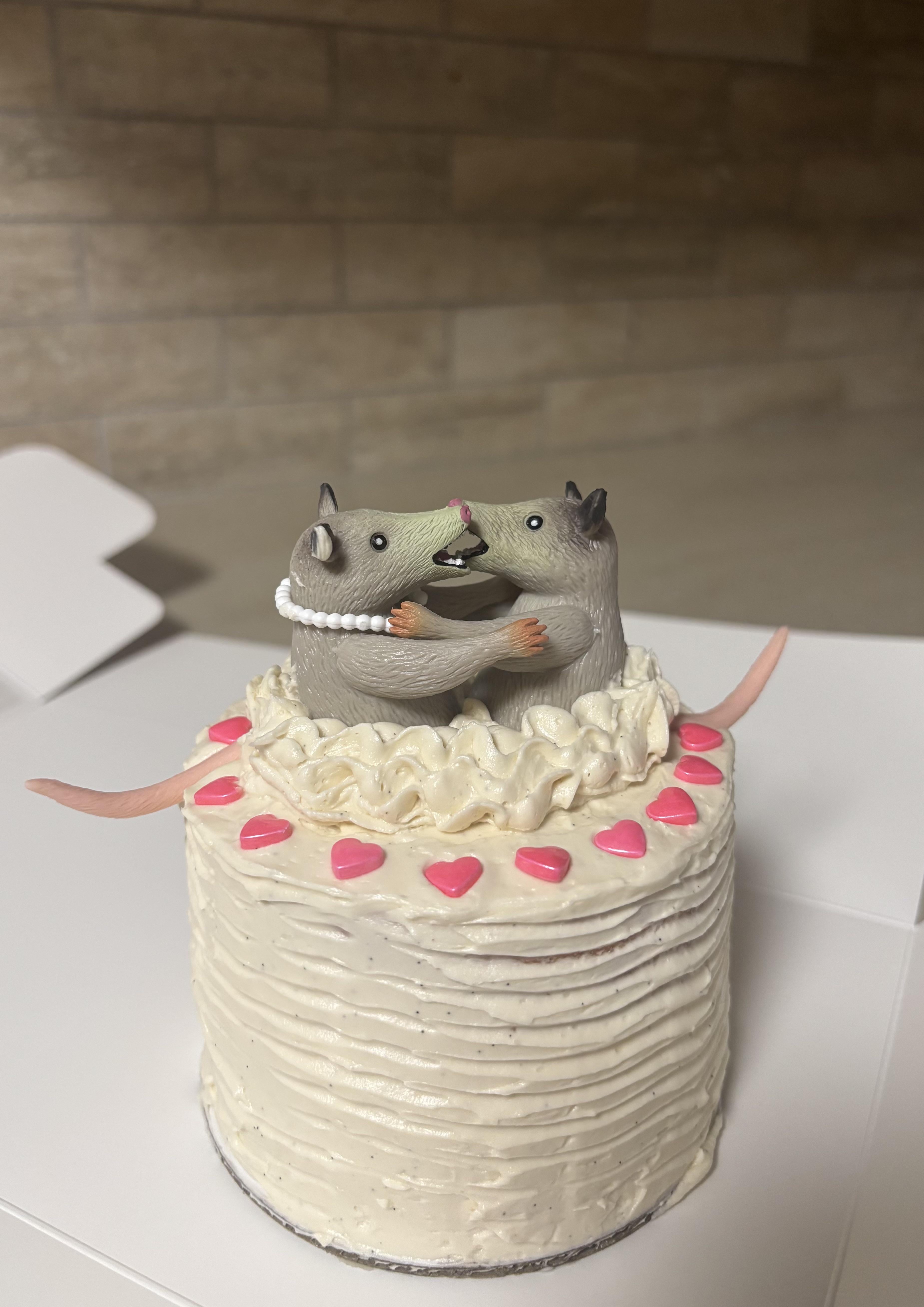 Tiny wedding cake for my opossum loving partner by wonky_donut_legs 1 Comment 5PurpleSquids 9 months ago This is wonderful!Write A CommentYou must be logged in to post a comment.