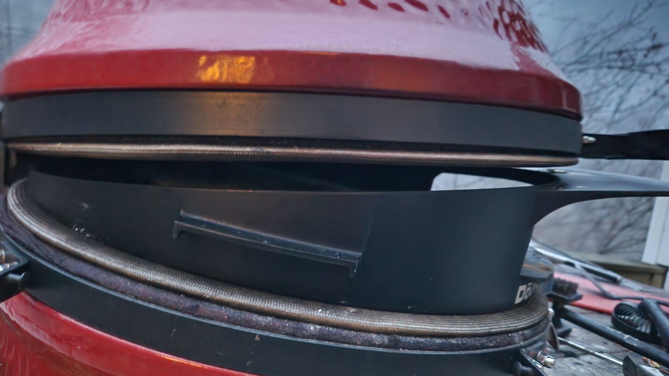 High, i tested my DoJoe yesterday, and it didn't go great – i realized this morning that it just doesn't seal at all. Is there a way to lower the lid? If i use it for smoking it works, although the metal band is a bit (1/4") lower on the lid in the back.