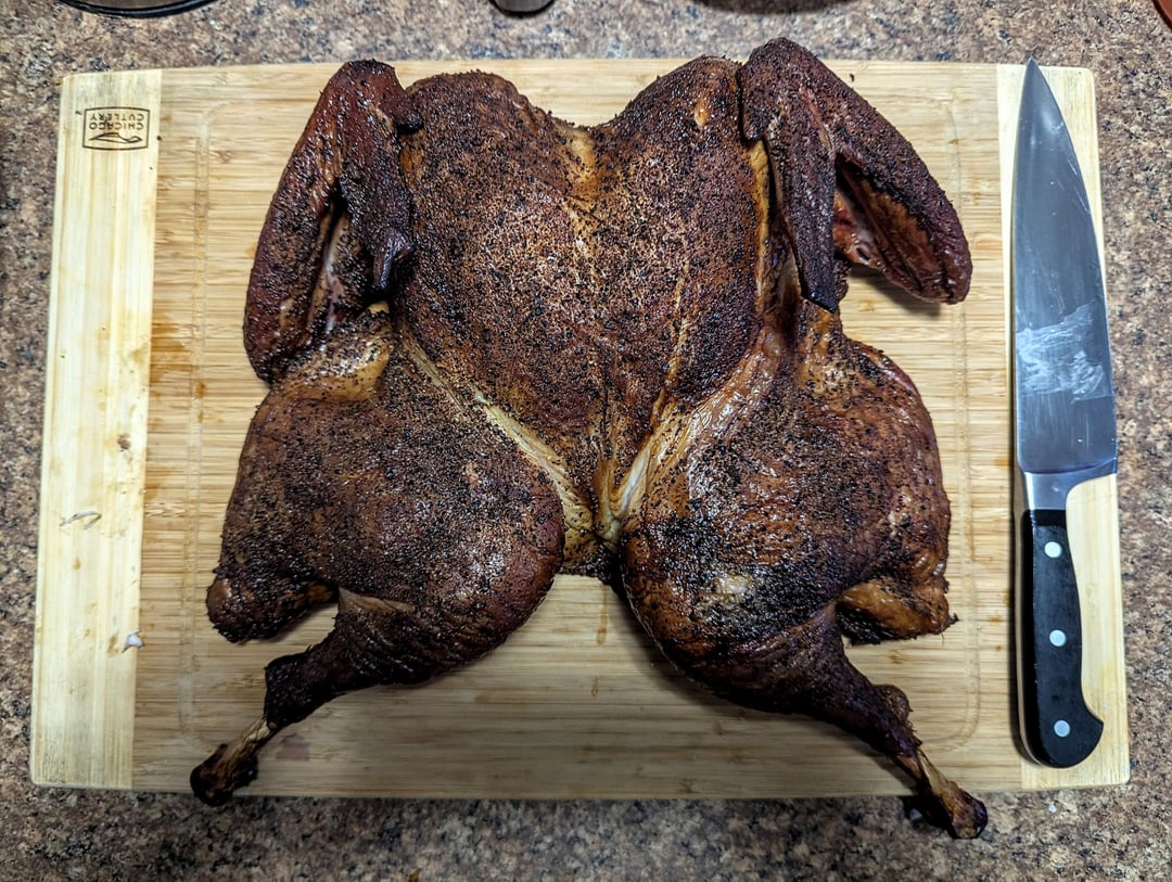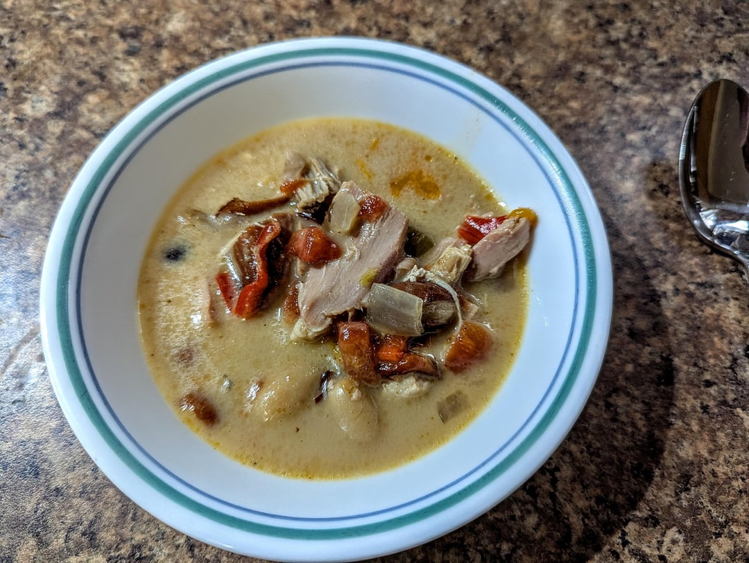 Smoked a turkey last night for dinner. Made a broth from the carcass, and made a soup/chili with some of the leftover meat.