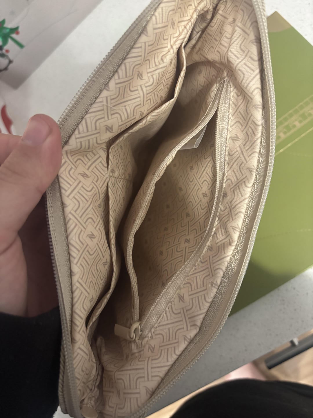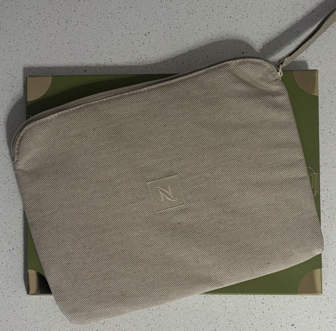 Havent seen anyone post it on here so I thought it would be great to show you guys what the recent travel pouch gift with purchase looks like. Great size, could easily fit an Ipad mini but probably not a full size ipad. Its bigger than I expected, but the outside I think is treated with some type of wax because it has a strange texture!