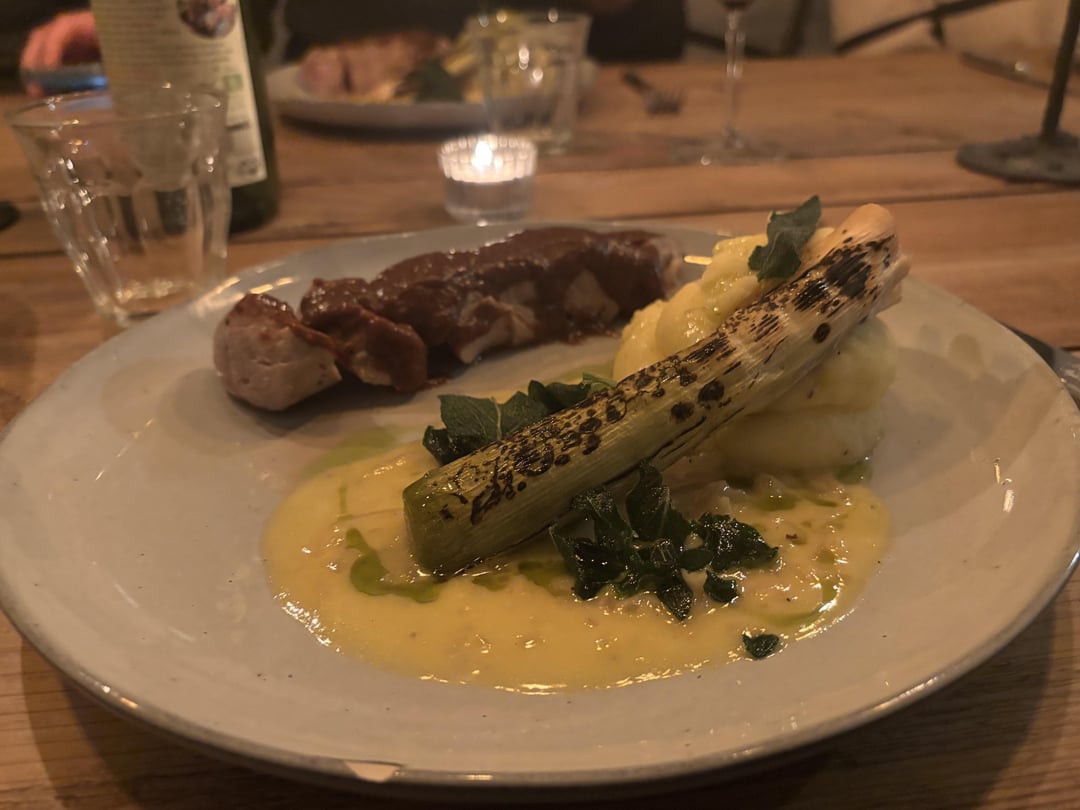 New years dinner – sous vide pork tenderloin, potato mash, leek and plum juiceby xynaxia 1 Comment xynaxia 1 year ago Credits go to my friend who made it!Recipe;The brown sauce was; plums, orange juice, shallots, garlic and thyme.White sauce was, shallot cooked in white wine, apple cider vinegar, butter.Leek with miso, and pork tenderloin with salt and pepperPotato mash with potatoesThen topped with fried salie and salie oilWrite A CommentYou must be logged in to post a comment.