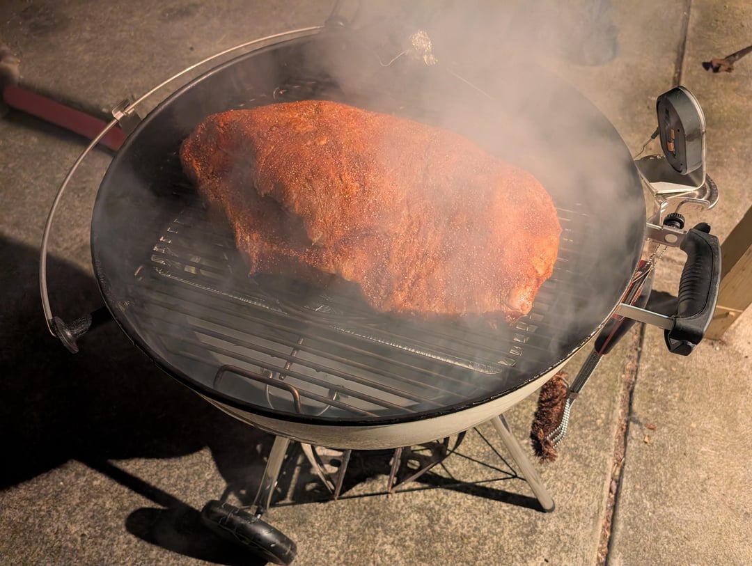 Really hope this helps someone else looking to use the smoke ring/diffuser plate to smoke a full packer on the Weber kettle.