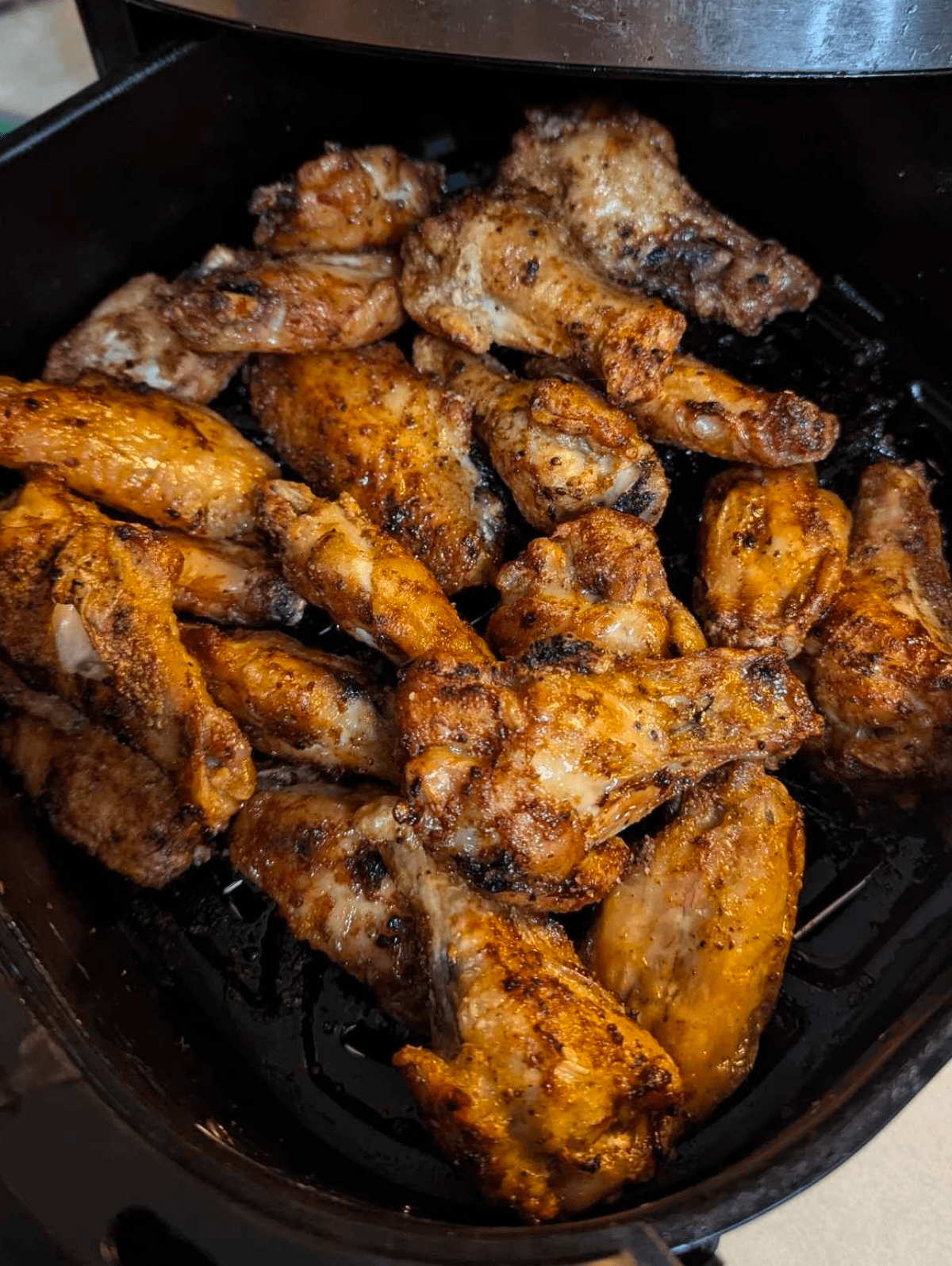 I buy the Buffalo Wild Wings sauce at the grocery store. Pick your favorite. I like Spicy Garlic,Asian Zing. I too air fry wings! I use fresh wings,and cook outside.