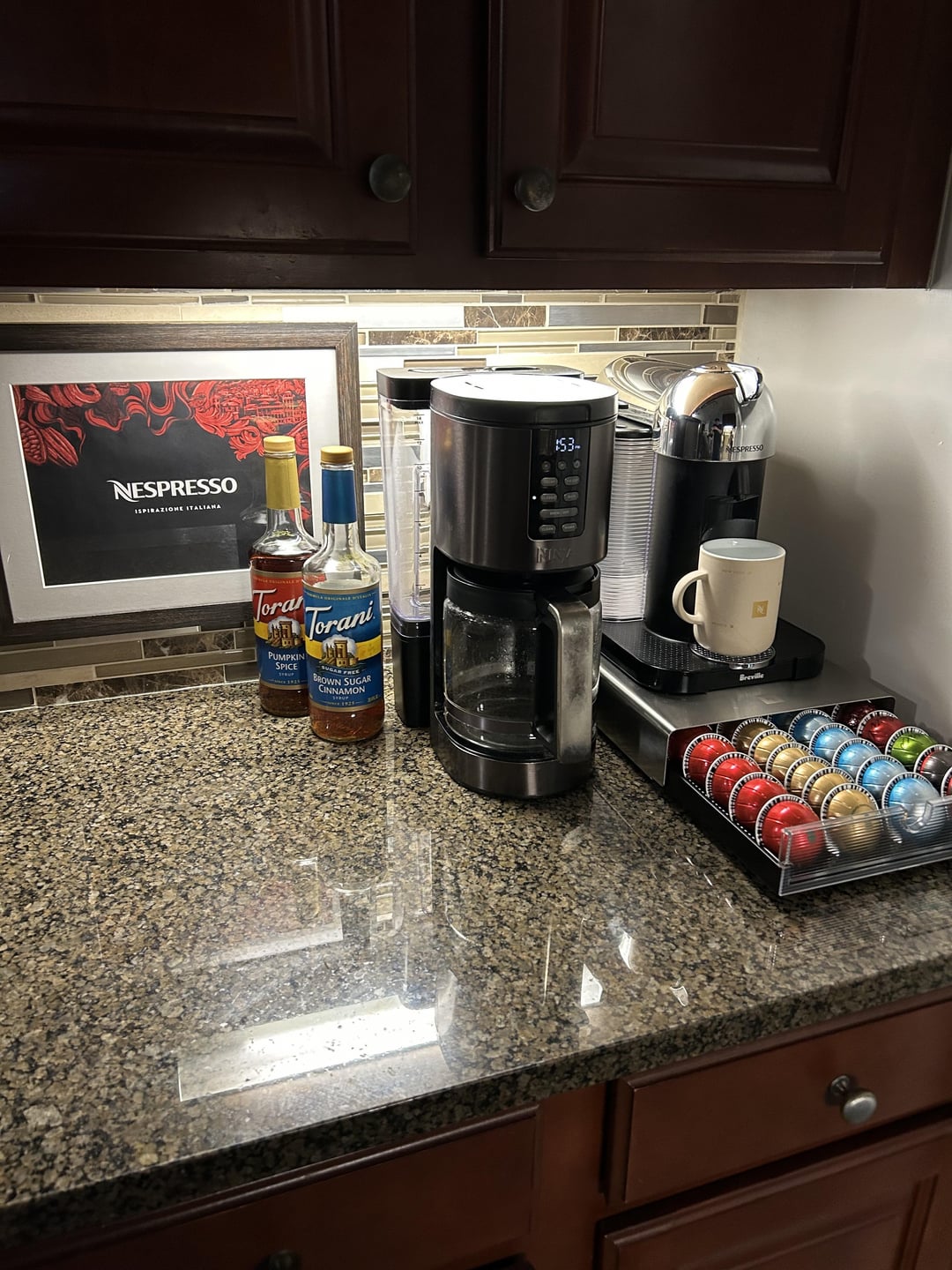 Nice setup! Framing the Nespresso bag is a unique touch.