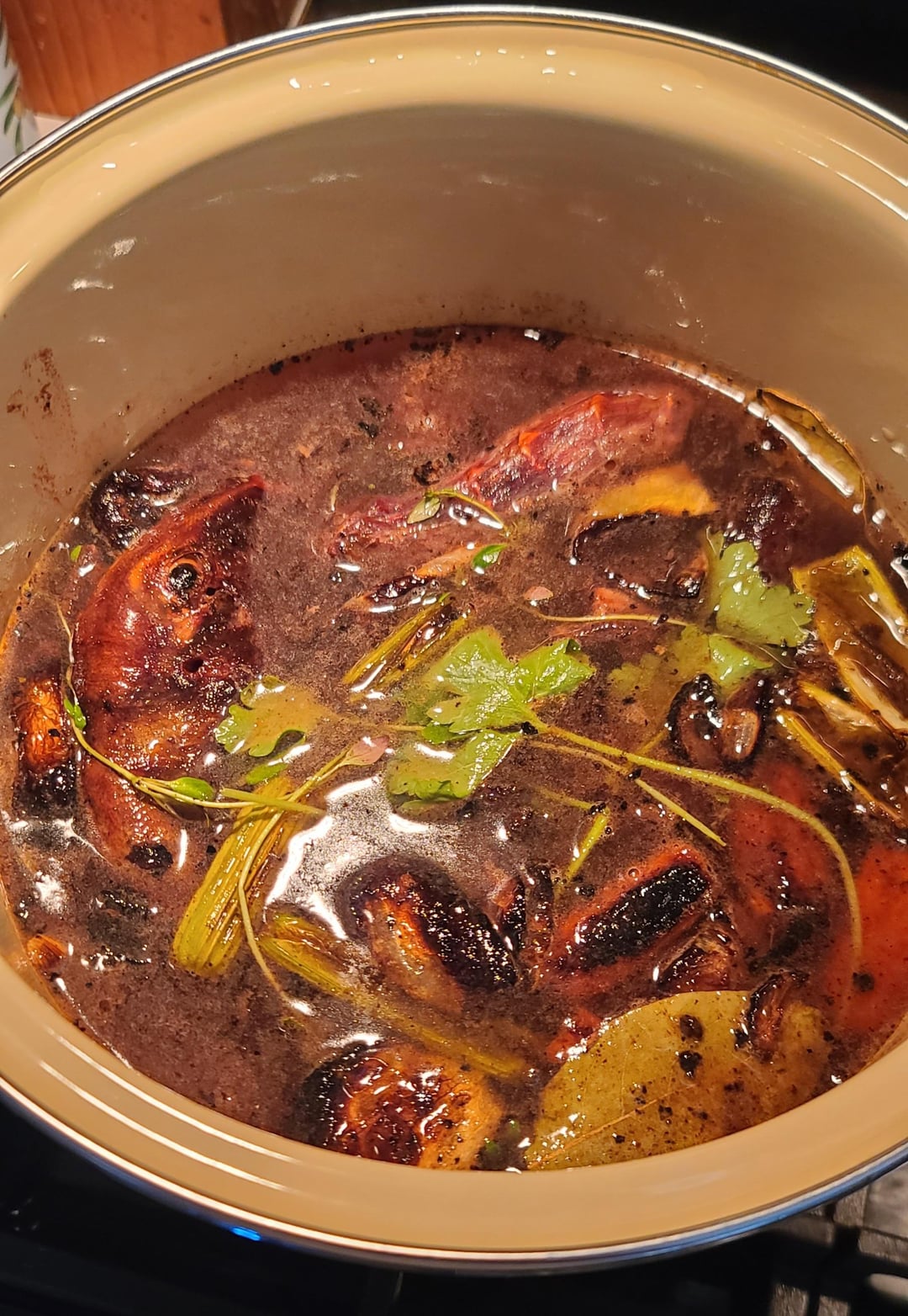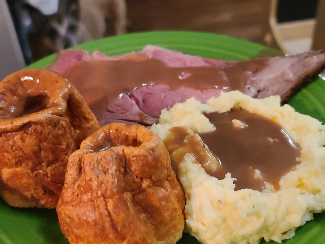 (Ps, gravy from drippings and homemade duck stock from the carcass left over from Christmas Day Peking)