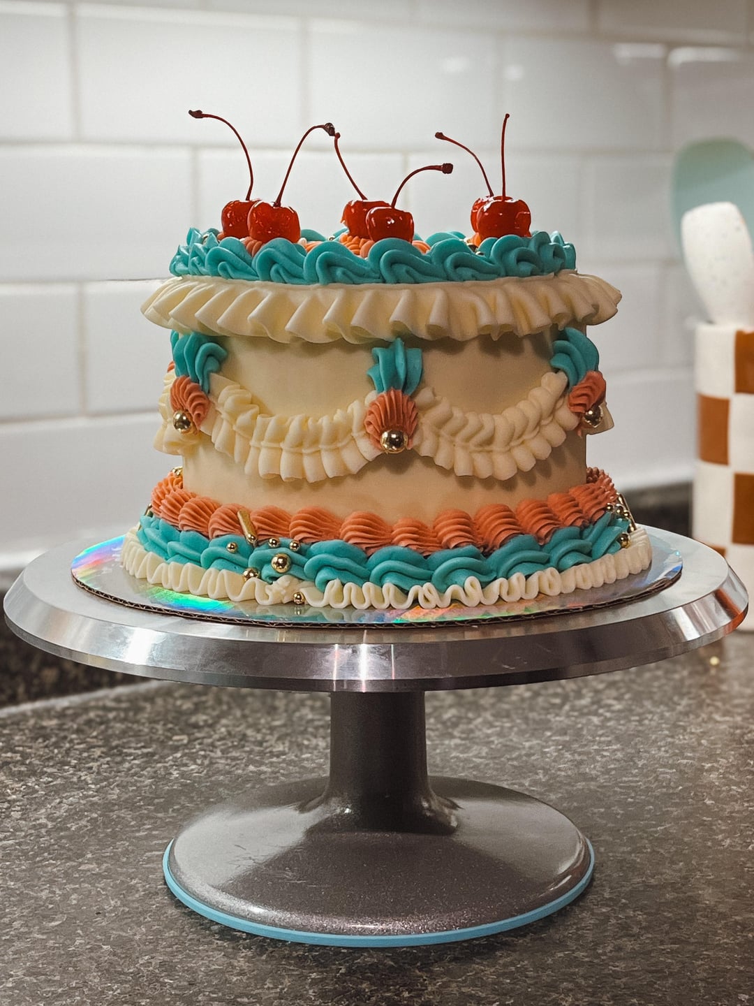 And then did a vanilla buttercream for the final coat and piping!