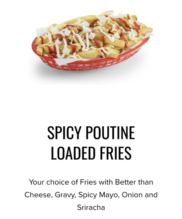 Large spicy poutine, regular fries COULDN'T FIND CALORIES FOR IT ONLINE by greenleaf5211 1 Comment Shreyas__123 1 year ago 900Write A CommentYou must be logged in to post a comment.