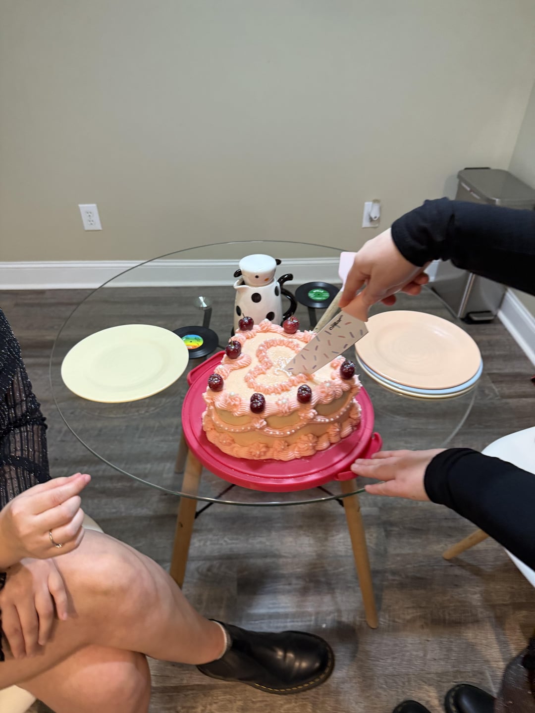 That’s a beautiful cake 🩷 I love that it’s heart-shaped! You did a great job.