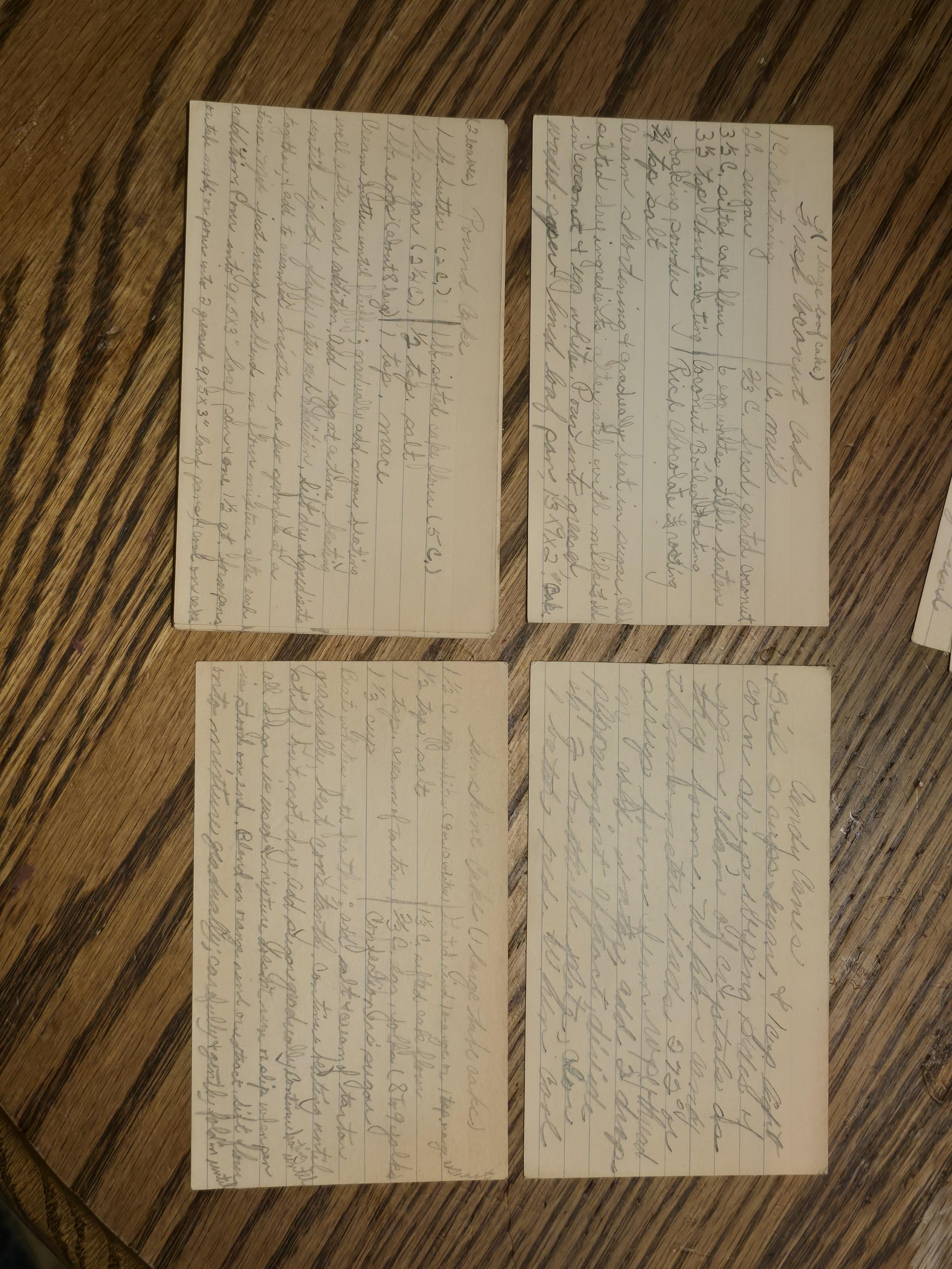 Here are the individual cards, made much easier to read. Try posting them to a sub for handwriting, “what is this”, cooking, etc.