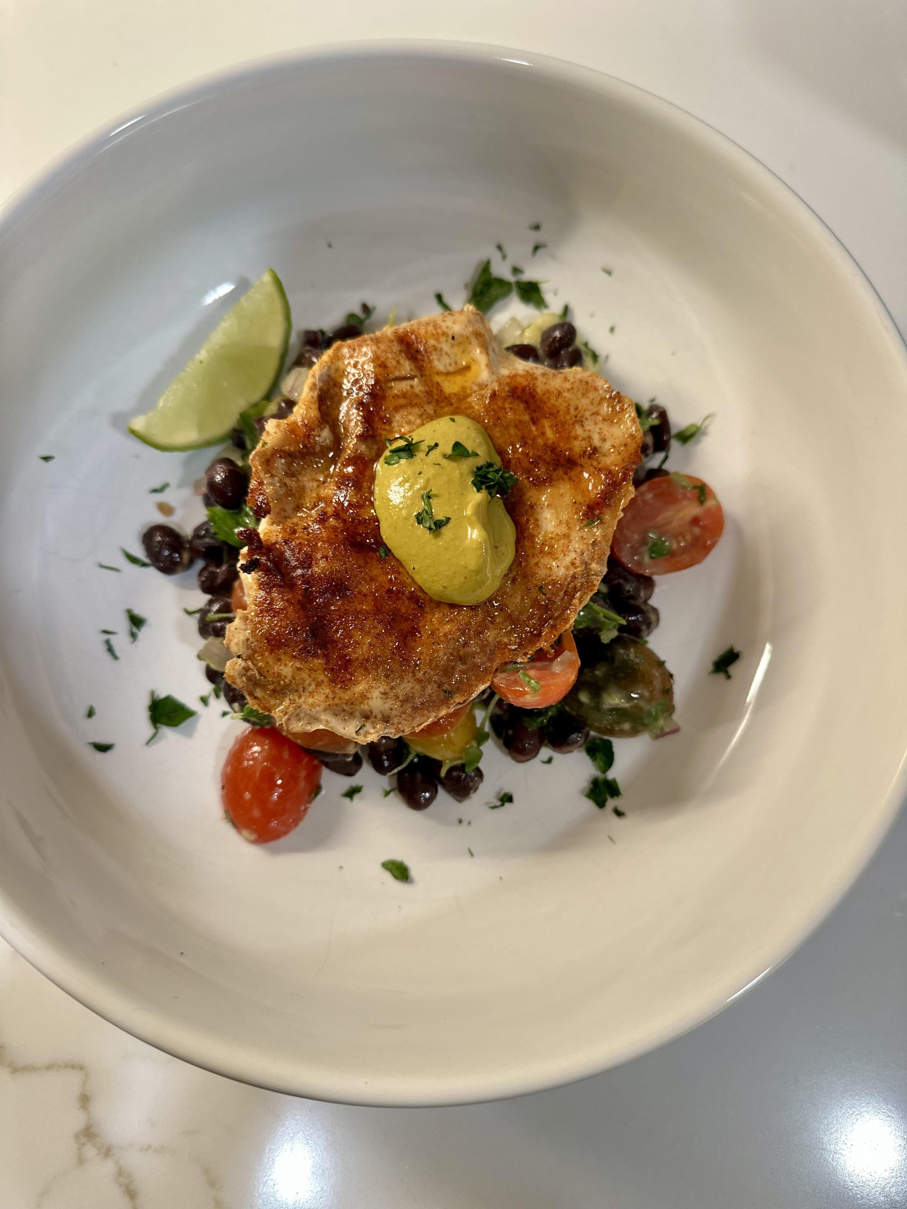 Gifted an Omaha steak box which came with my least favorite meats-boneless, skinless, chicken breast. Thank goodness for SV which turns what, in my opinion, is an incredibly unsurprising protein into something fairly delicious. Did dry rub of chili powder, onion powder, paprika and cooked at 154 for 1.5 hours then seared on cast iron after a 5 min ice bath to prevent overcooking since they were pretty scrawny pieces. Served over black bean, tomato, avocado salad with a homemade chipotle sauce.
