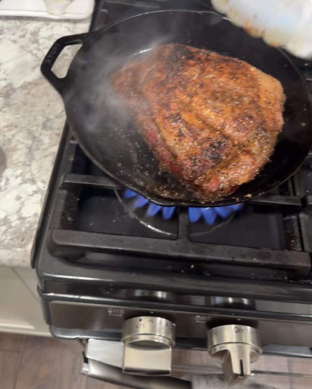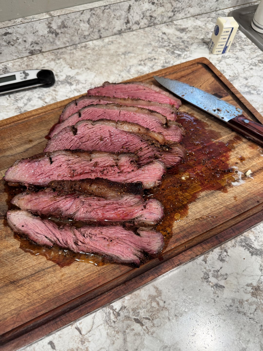 Whole pichana on Traeger, super smoke at 225 until about 115. Seared in a ripping hot cast iron to finish. Perfect New Year’s Day meal. Some “sides” for the wife.