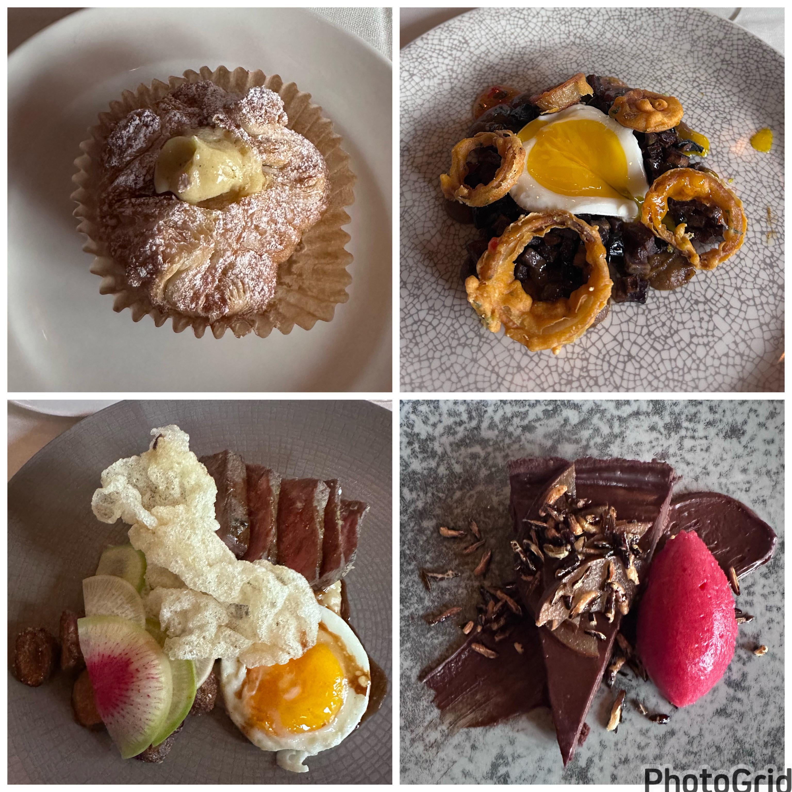 Grilled Striploin, Potato-Cheddar Purée, Crispy Rozette Potatoes, Red Wine Jus, Puffed Beef Tendon