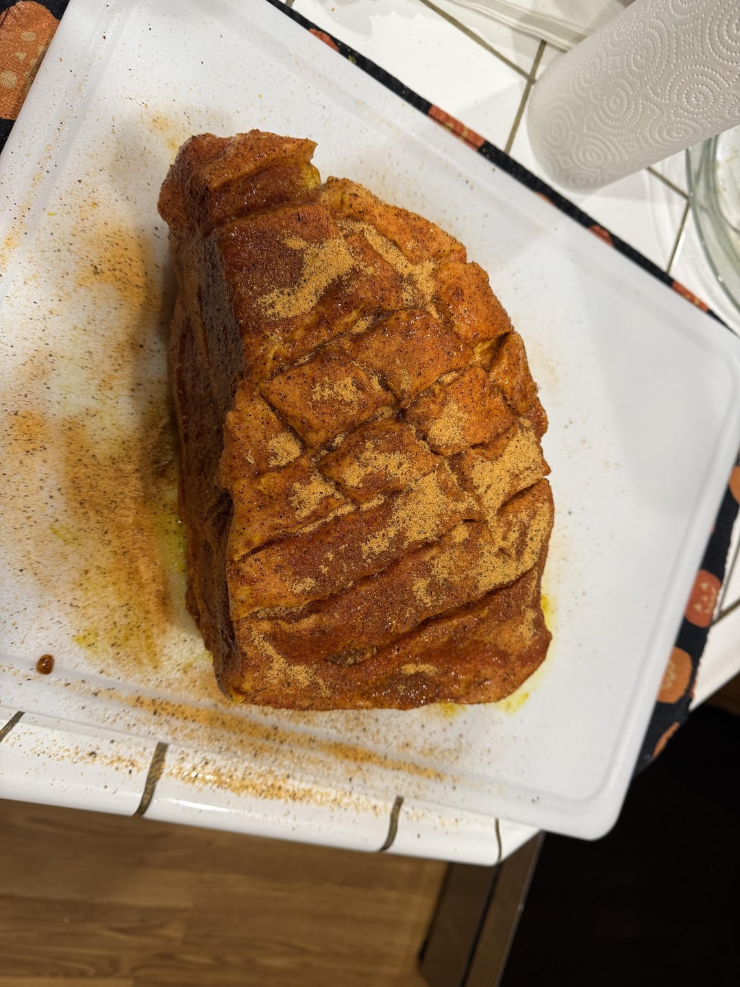 Started at 545am at 250 to give myself some wiggle room if the pit temp probe was off by a bit. Bear mountain apple pellets. Added a seasoned and scored block of cream cheese later on in the cook for bacon wrapped peppers. She came off around 6pm for a wrap and rest then dug in. Bone came out clean and easy. Maybe a little dry in spots but overall was super thrilled with the results.