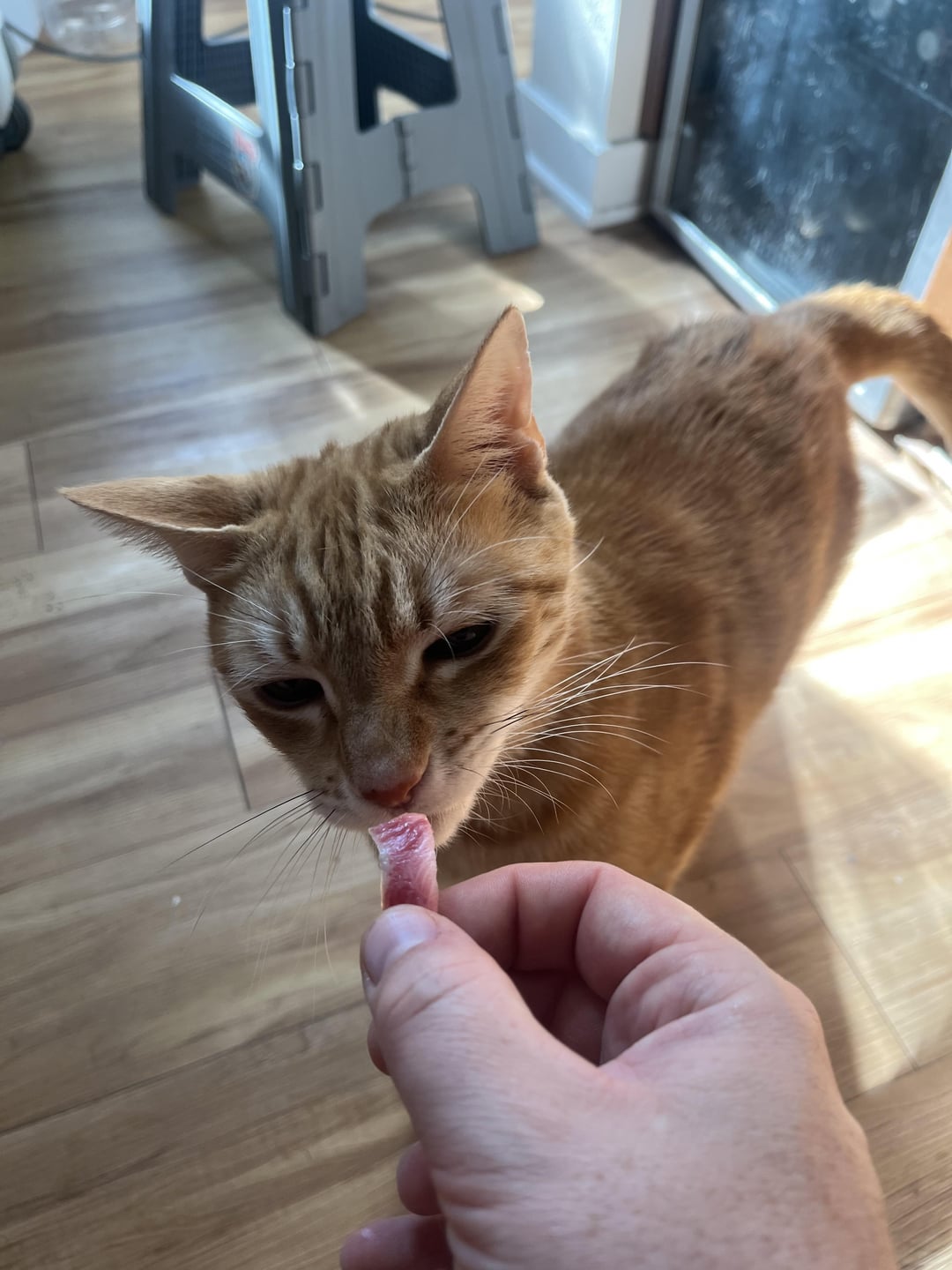 Practice even cut sizes and proper rice formation. Looks delicious and thanks for the cat tax