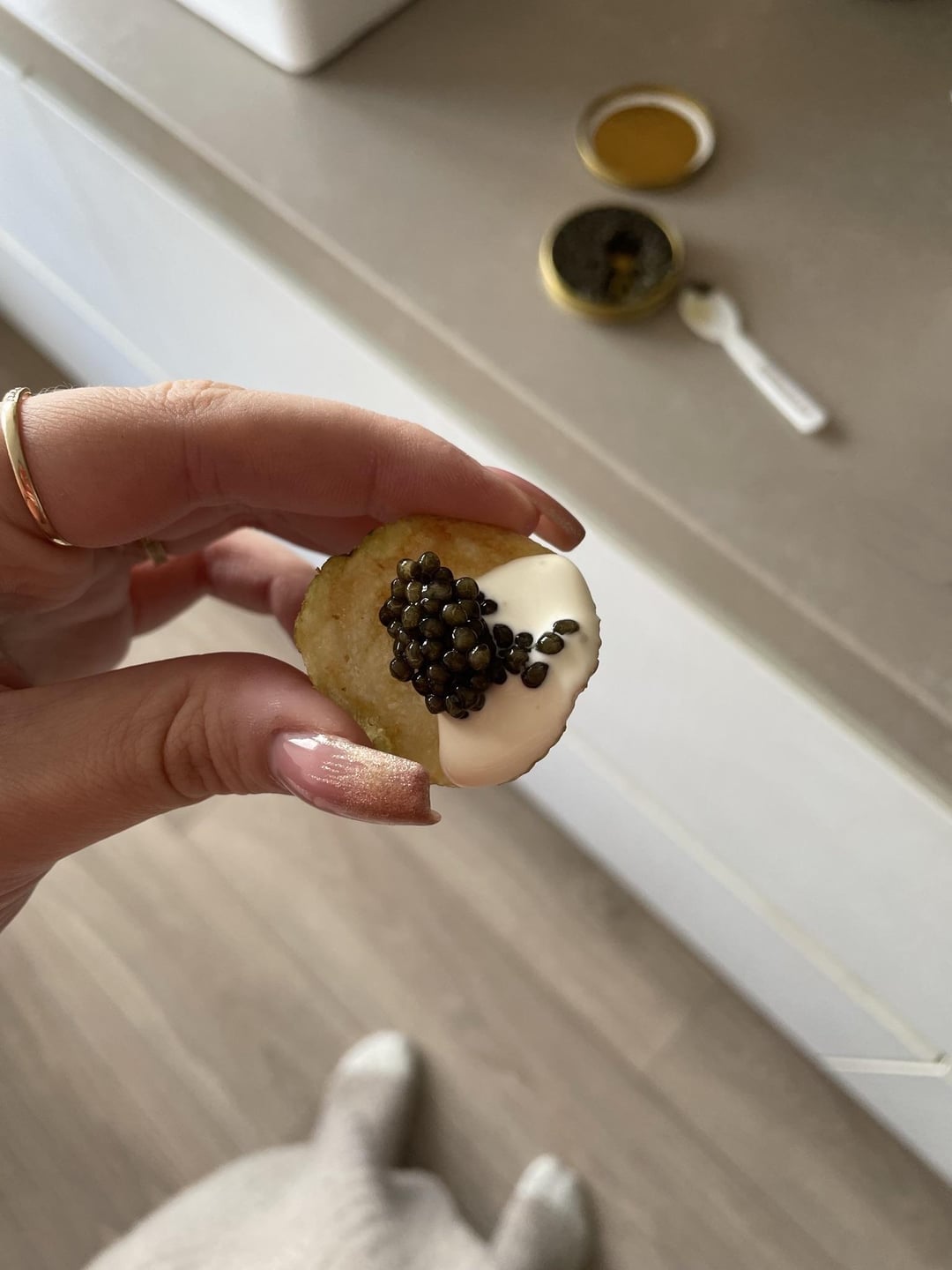 I like red caviar more for some reason. Must be my plebeian taste lol. It goes hard with horseradish cream cheese or mashed avocado on a crackers.
