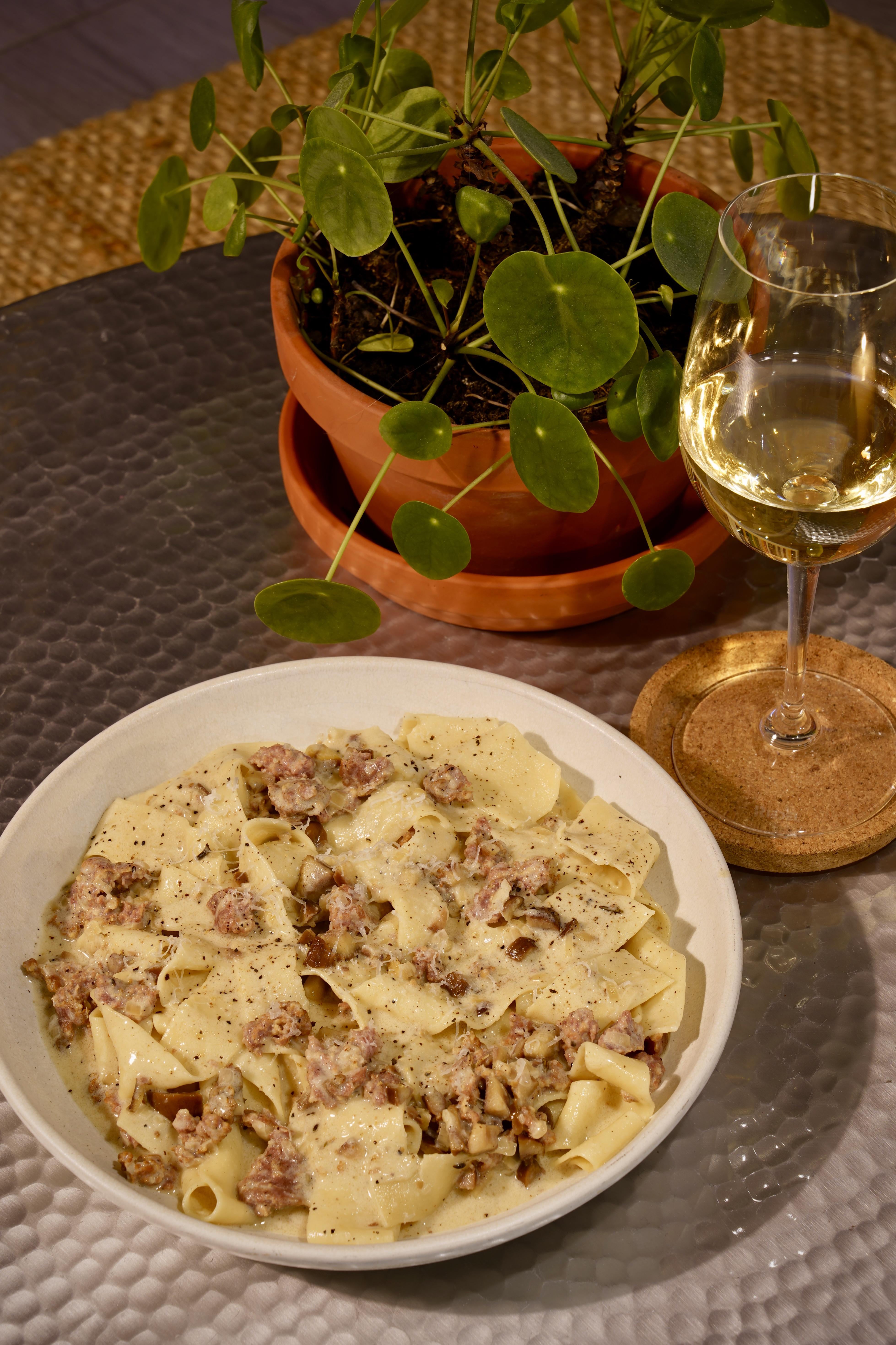 I remembered Norcina, that I had previously made with extruded pasta, but I also had some dough to use.