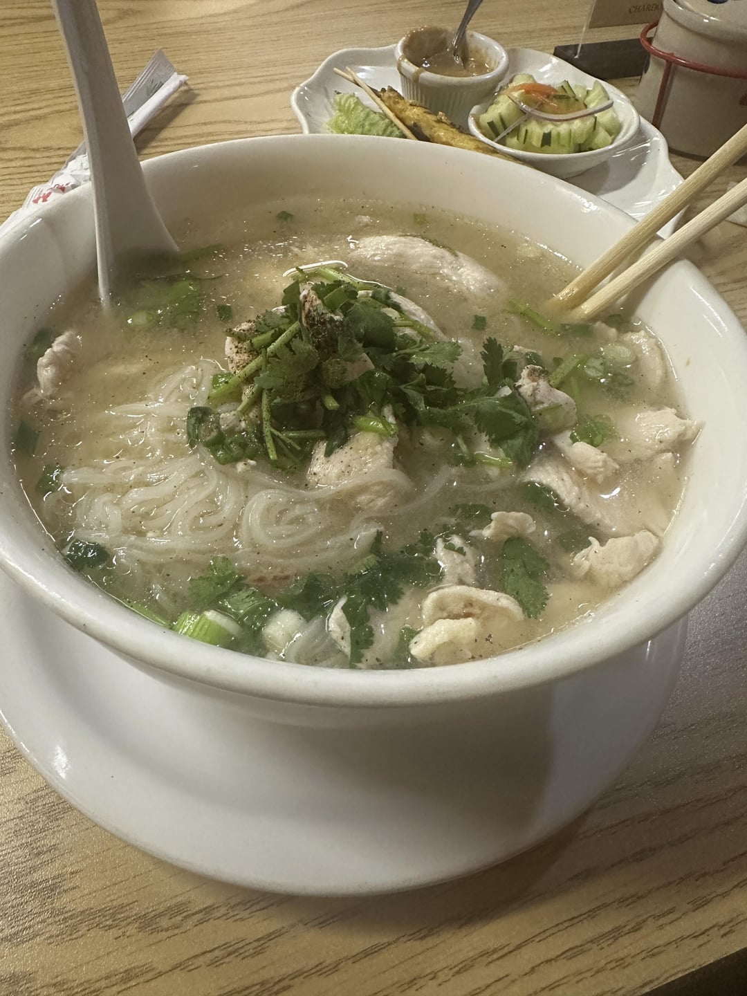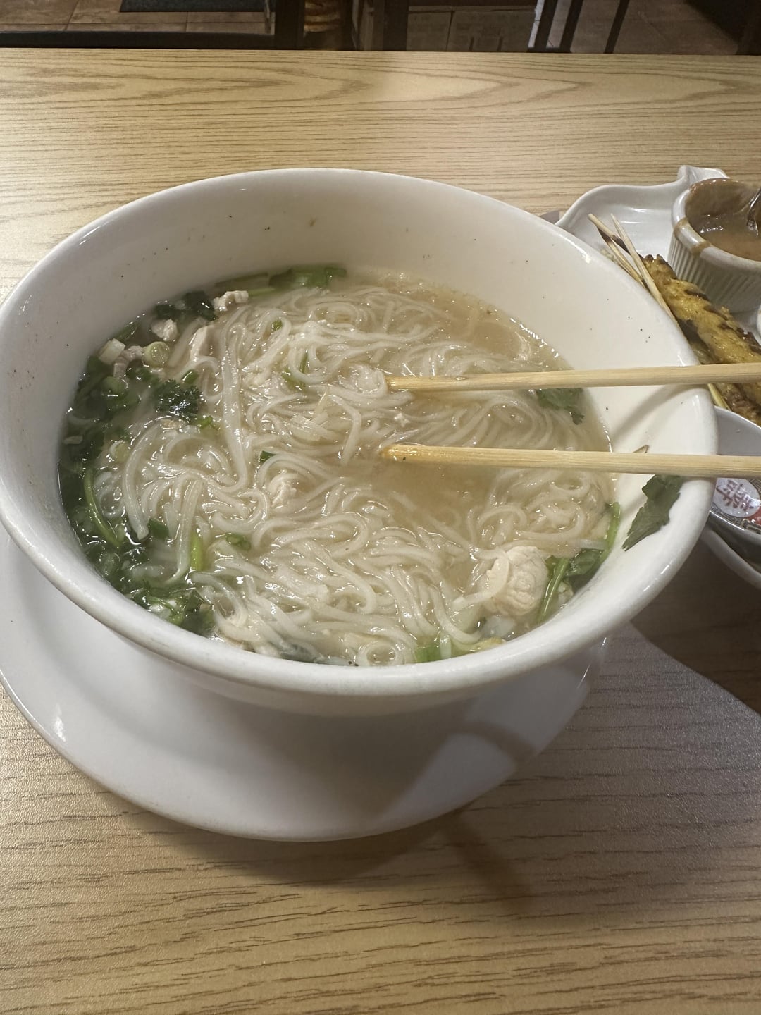 It’s from a small, local place. I couldn’t get the full list of ingredients but here is the description in the menu: Original Thai soup with bean sprout choices of noodle and meat special broth soup base. I got rice noodles and chicken for meat.