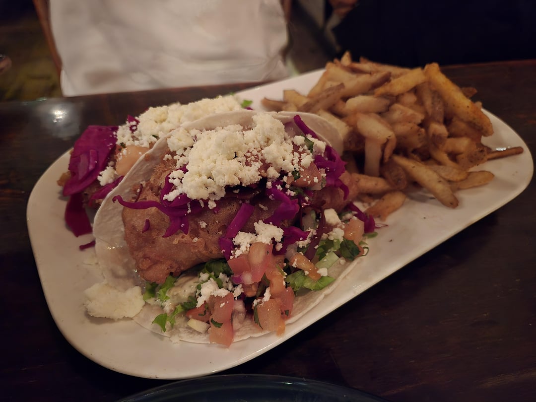 This was my first time ever having a chopped cheese and wow this was easily one of the best meals I've had this year. It's dubbed the "McChopped cheese" on the menu as it's dressed like a Big Mac with the sauce, tasty seasoned ground beef and perfectly melted cheese but the overall quality you'd expect from The Wren. Second pic is the fish tacos which were good too. Went for a late dinner a bit before 9pm and it was still fully packed but only had to wait 5 min for a table as it started to clear out. Highly recommend trying this while it's on the menu, been here a lot over the years and this is easily one of the best sandwiches they've ever served