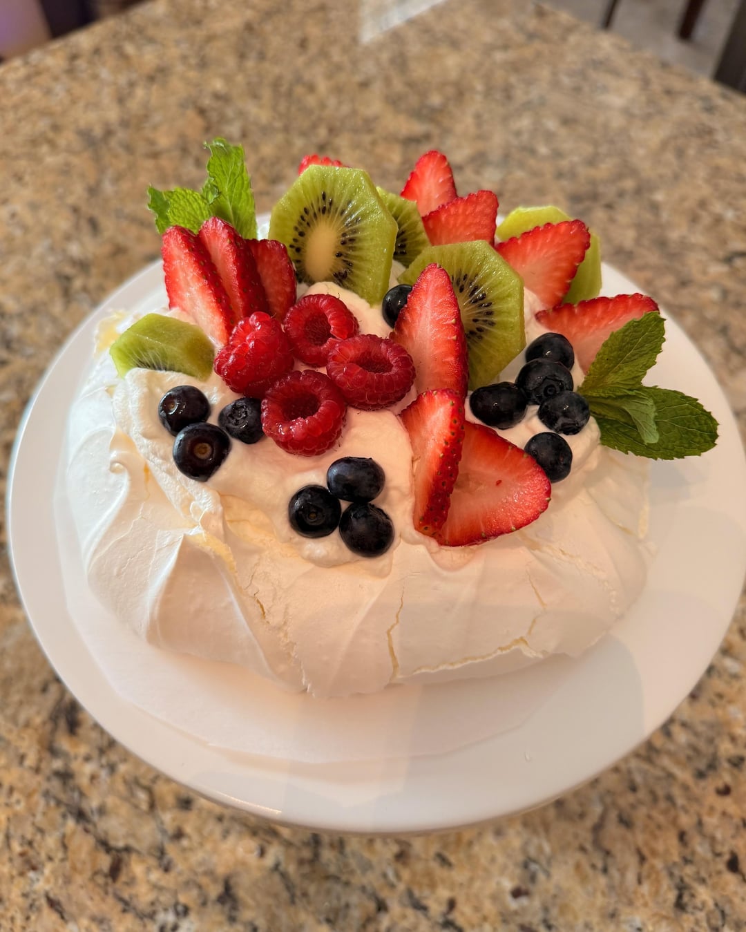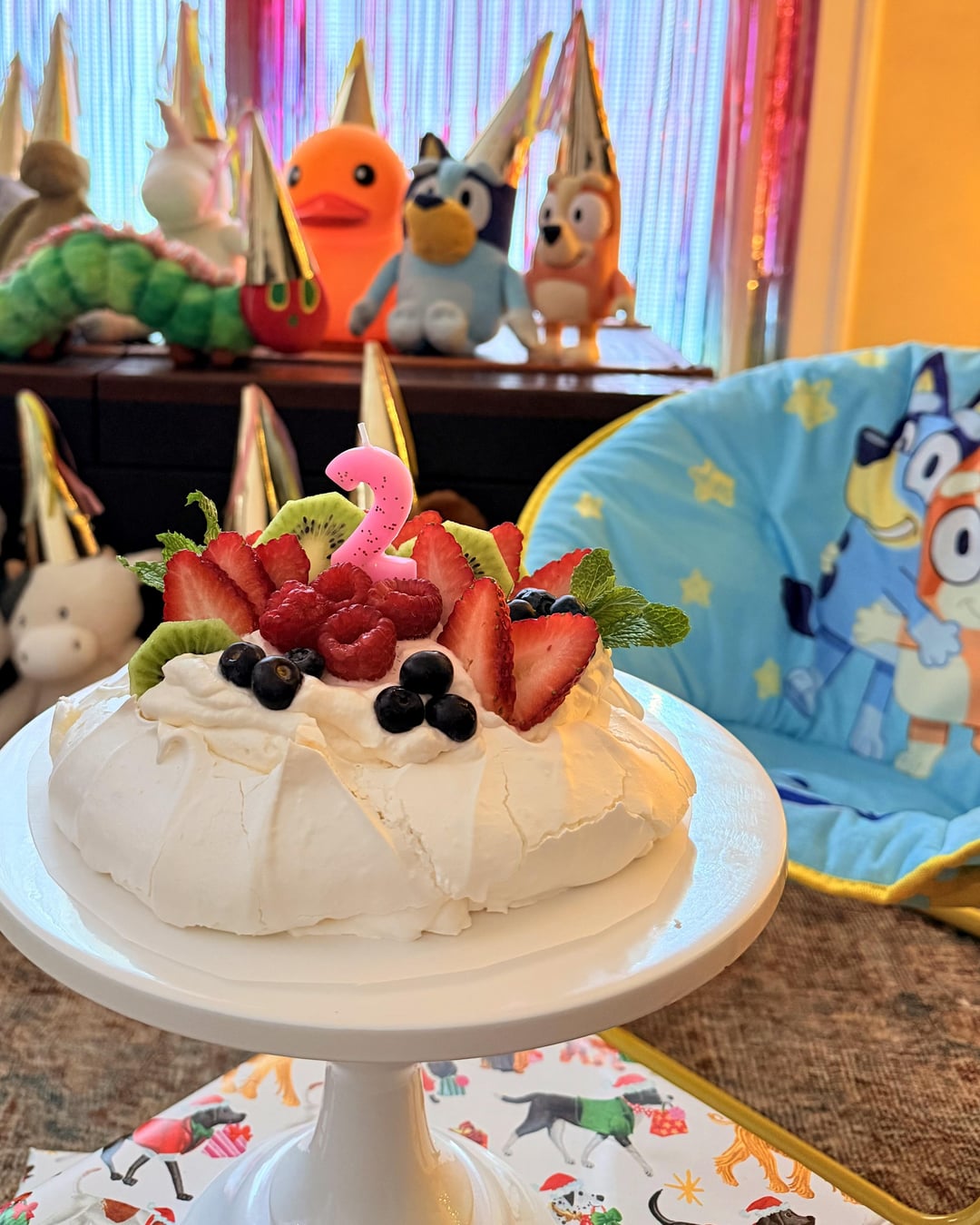 My toddler is obsessed with Pavlova episode of Bluey! Tried my best! Meringue is tricky but I thought it came out better than I expected 🤗