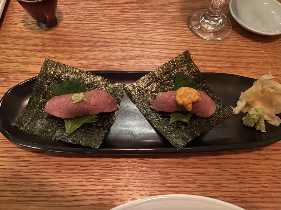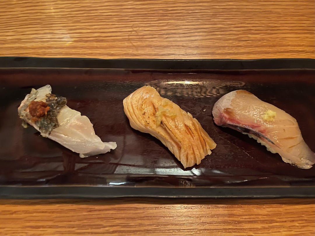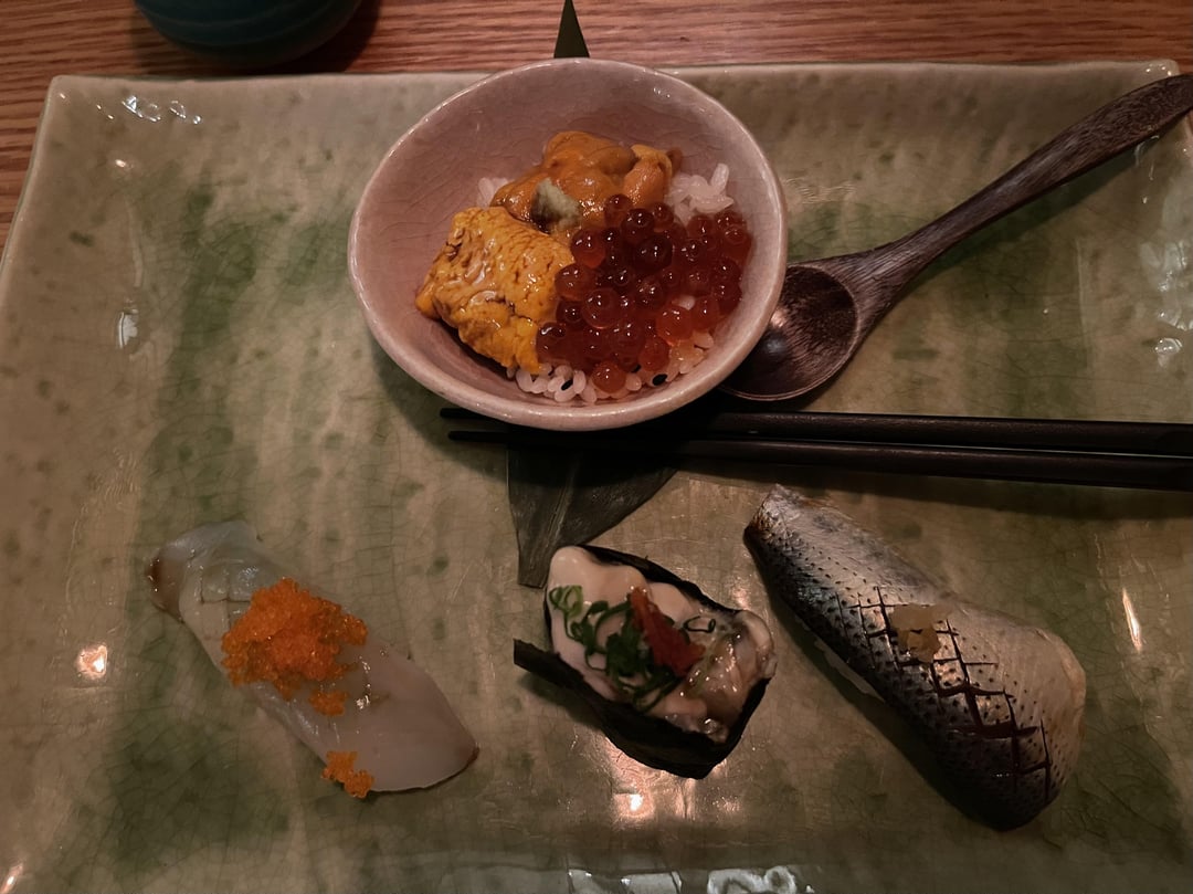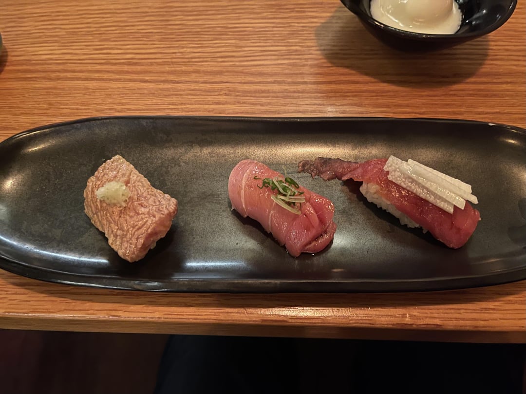 I tried to take pics and ask the waiter about each piece. I didn’t get all the details, but the pics include monkfish pate, three different fatty tunas, some beef with “toppings”, mackerel, other yummy stuff. 😀