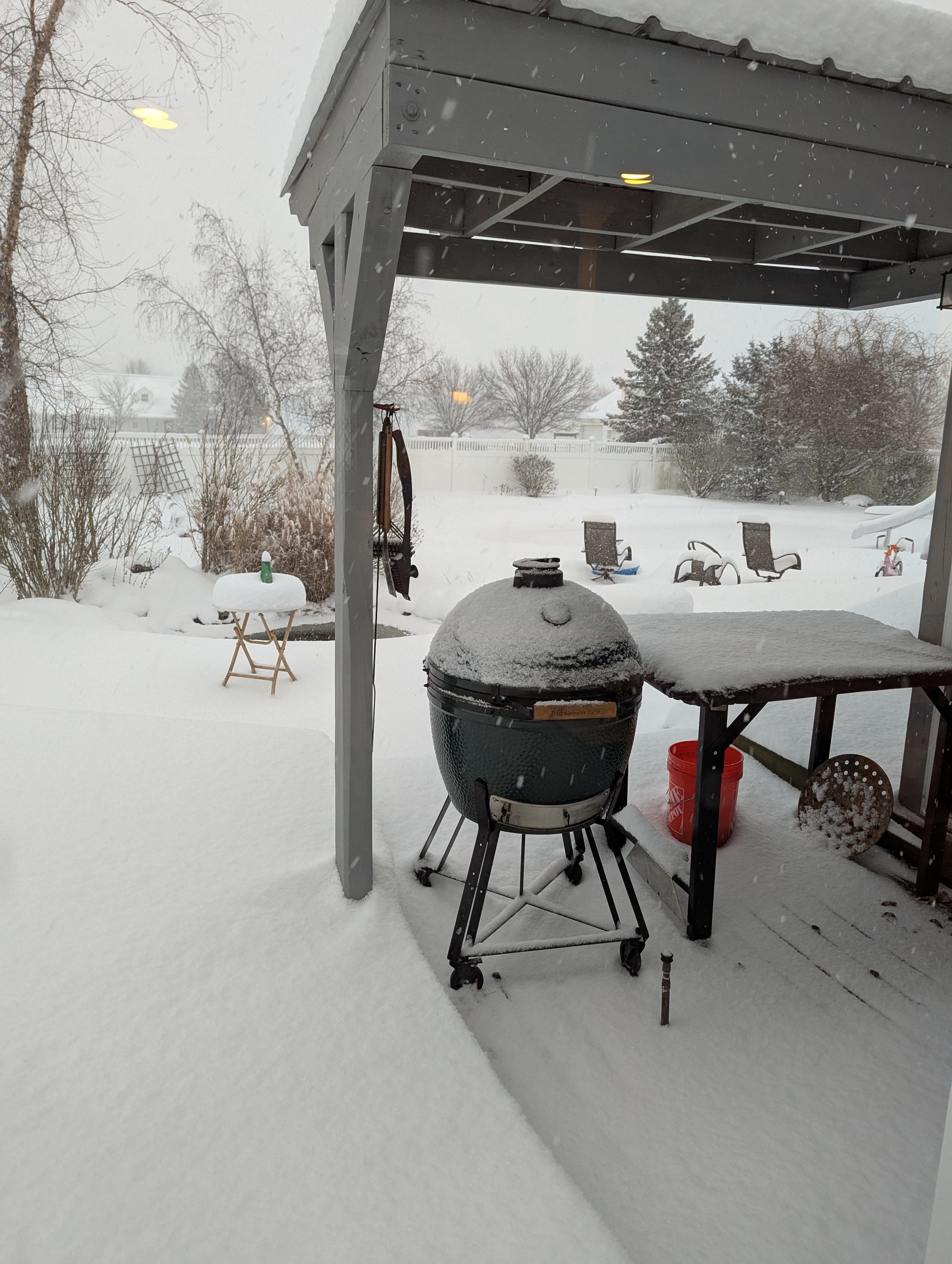 PedrosSpanishFly 10 months ago I absolutely love grilling in the snow. Fairly recently got a little big green egg. Any word on it cracking when it’s cold like that out?