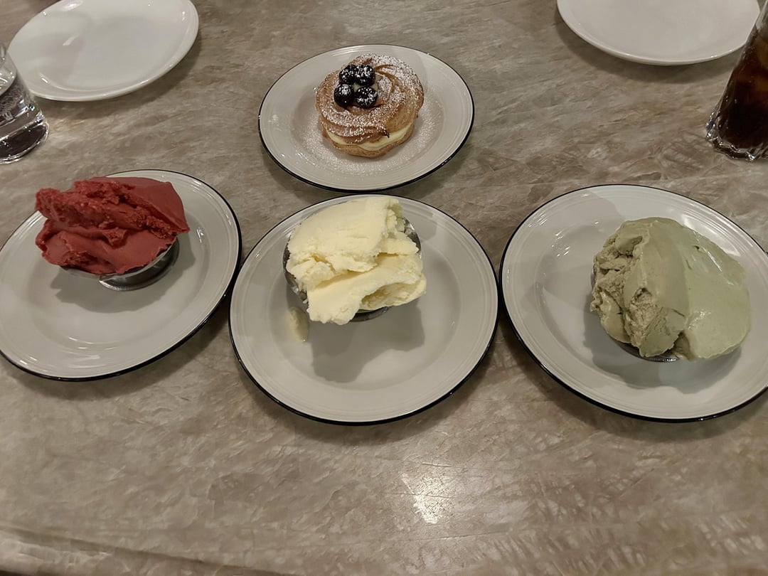Zeppole, cherry sorbetti, sweet cream gelato, pistachio gelato – Zeppole was a miss. Cherry sorbetti was packed with flavor, wow! So creamy and refreshing. Sweet Cream gelato was boring. Pistachio gelato was incredible. The saltiness contrasting with the sweet was delicious.