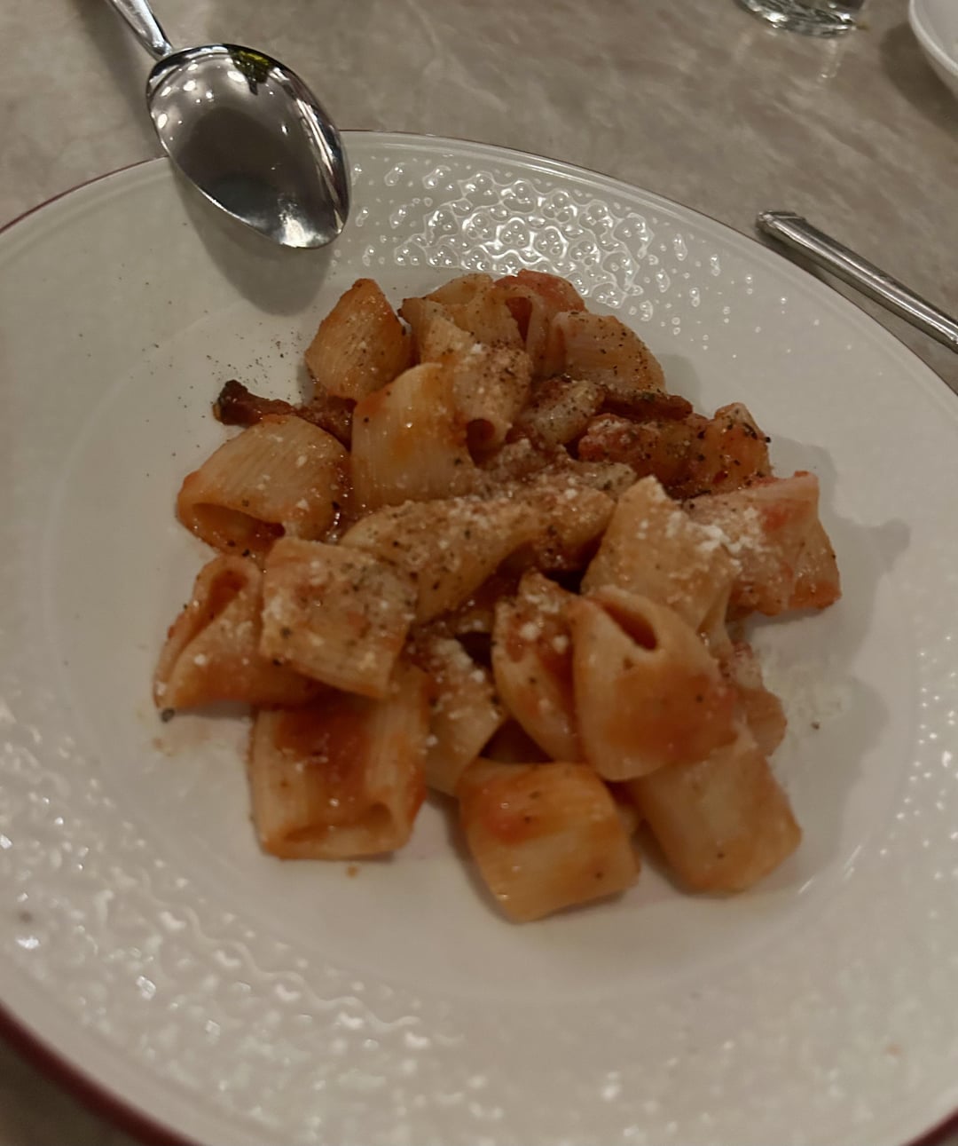 Mezze Rigatoni all a Amatriciana – favorite of the three pastas. Really nice and balanced flavor.