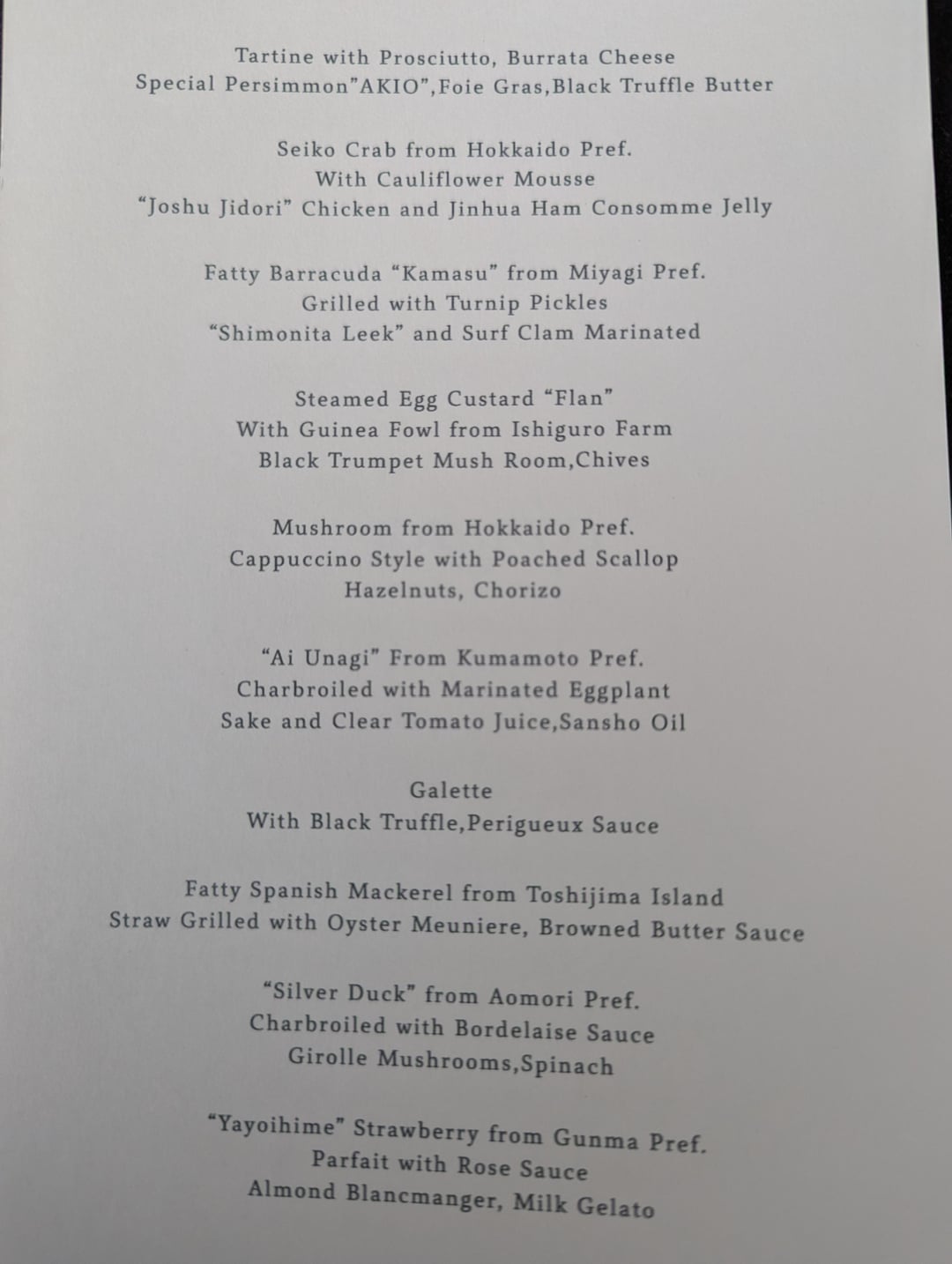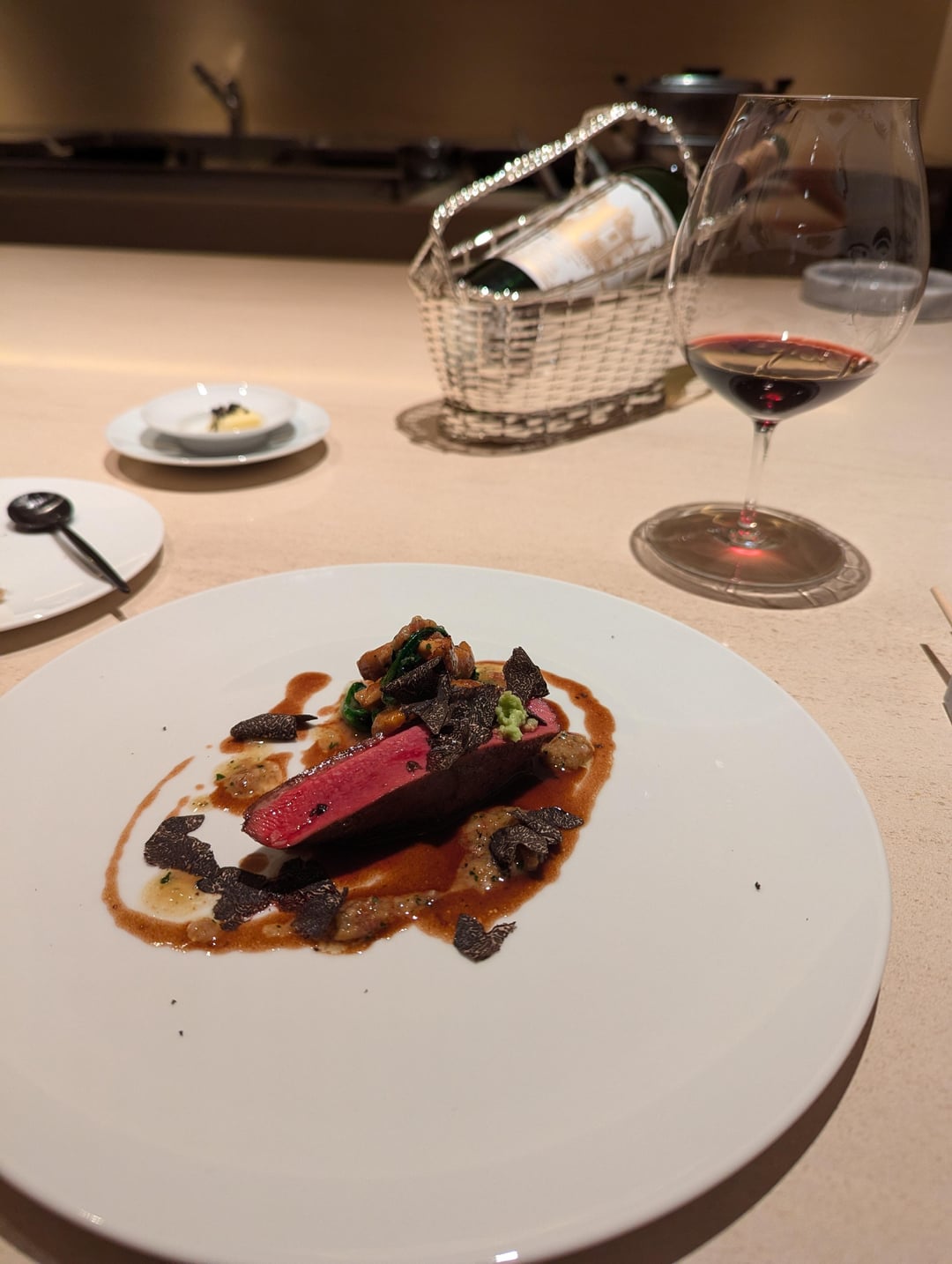 The food was very good, although I wasn't a fan of the overuse of (pretty average) black truffle at times, but that's a personal preference. A couple of highlights were the prosciutto toast (pic 1) and the unagi dish (pic 3) which had very crispy skin. The most memorable part of the meal, however, was the wine pairing. Most bottles in the pairing were around 10-20k yen bottles, with 2021 Nana-Tsu-Mori and a 1998 Chateau Haut-Brion for mains being a lot more expensive and obvious highlights. It did feel like wine was a real focus of this restaurant, hence its name, and I imagine they can't be making much profit on the pairing given the price. Food and wine pairing were both around 35k yen each (so roughly 70k yen pp).