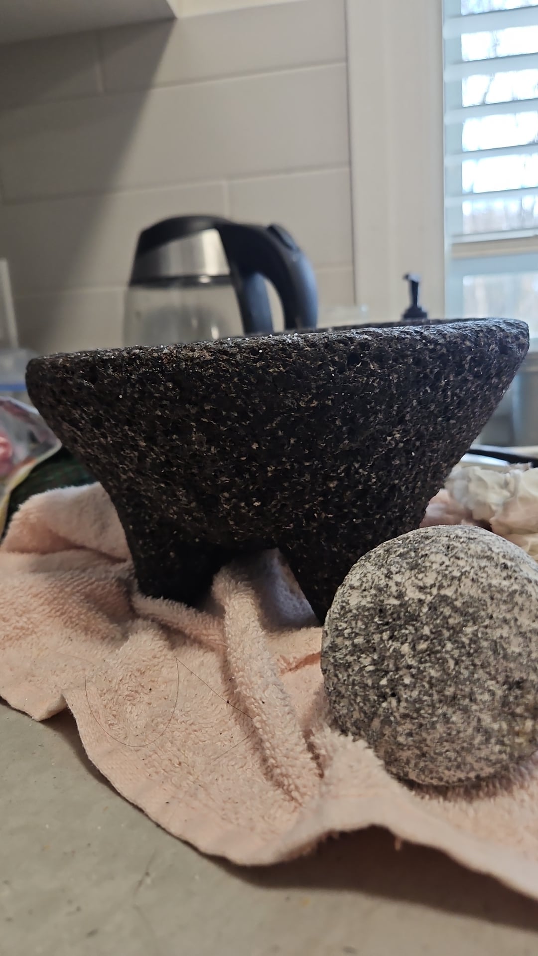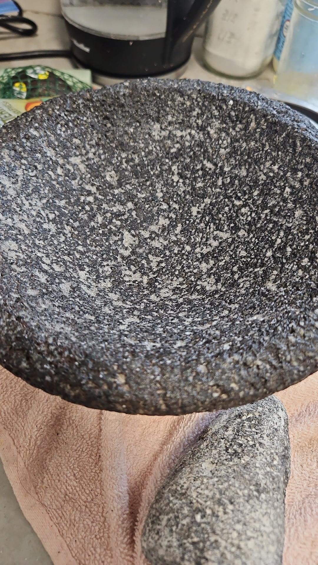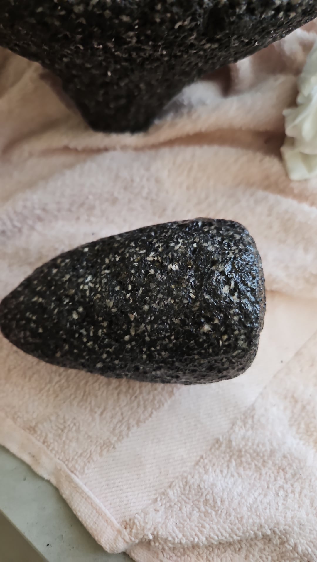 I just got this molcajete from my MIL and needed to verify if it's legit before I use it for my family. I've just cured it and it looks like there's some parts that are softer that I took a pic of on slide 3. I picked it out and it was soft. Is it possible for real molcajetes so have spots like that or is it combined with cement?