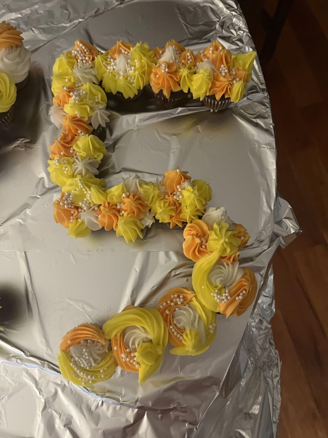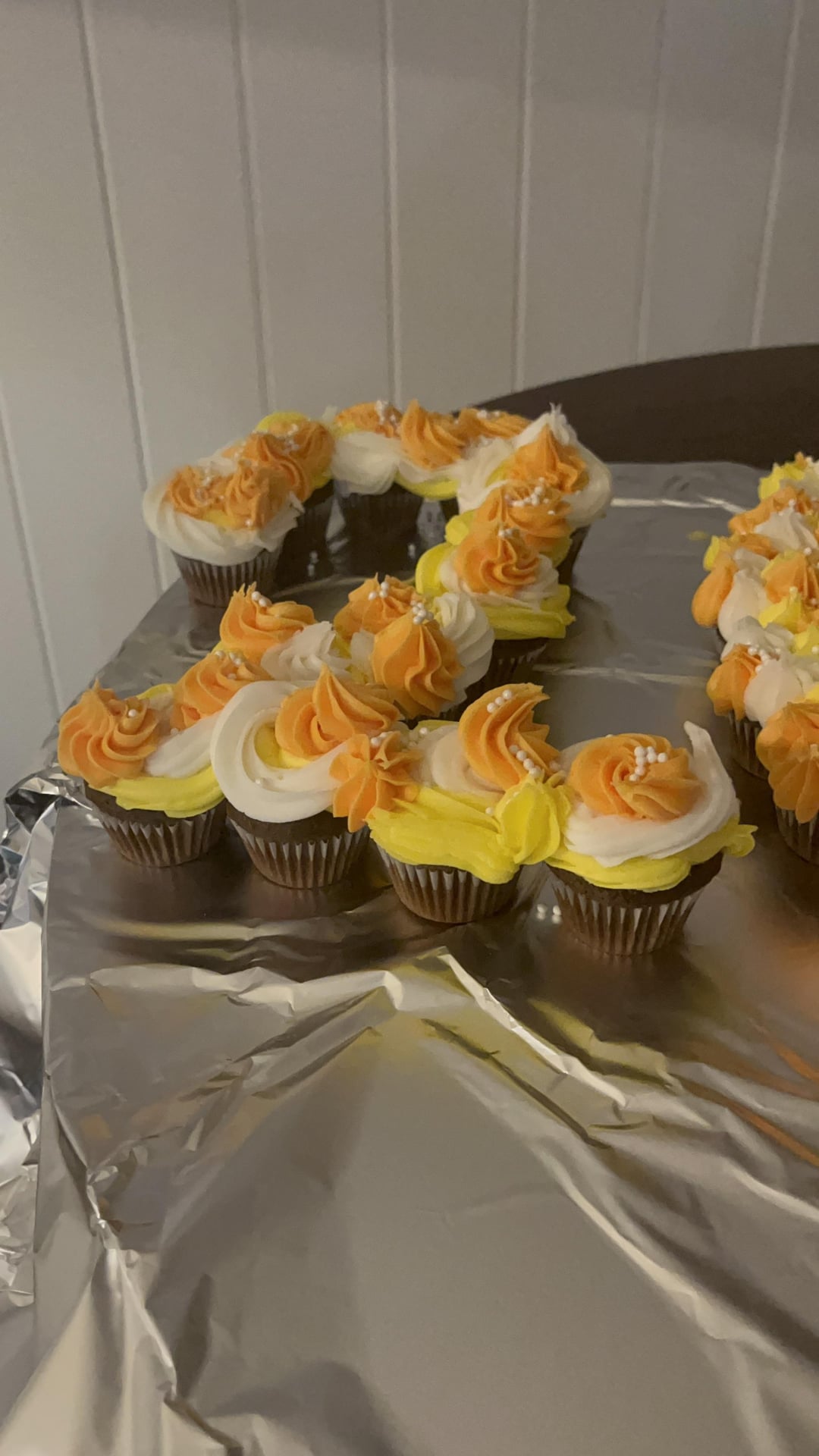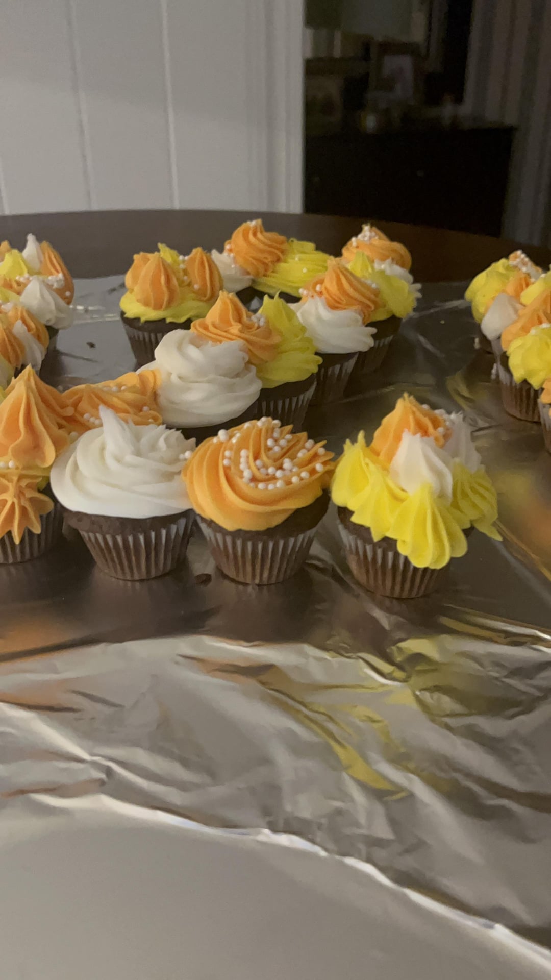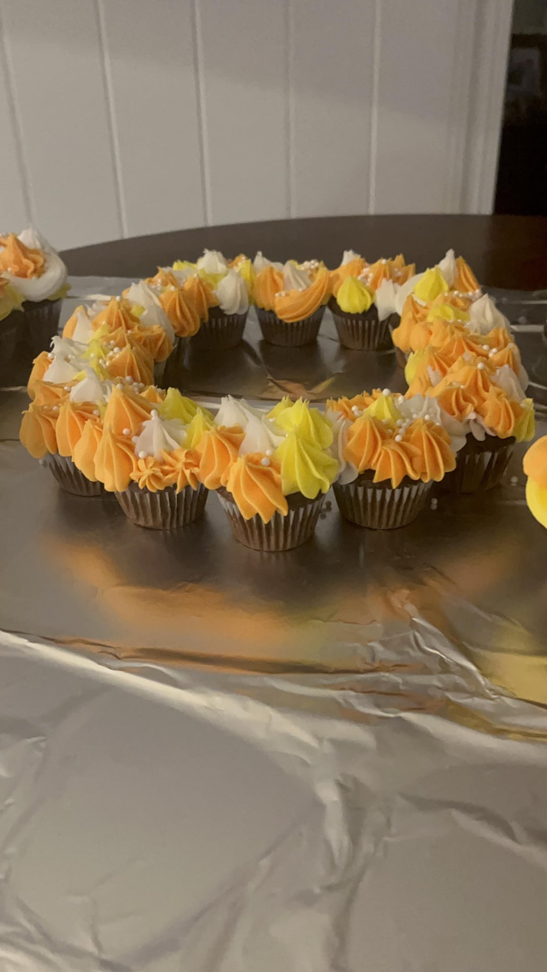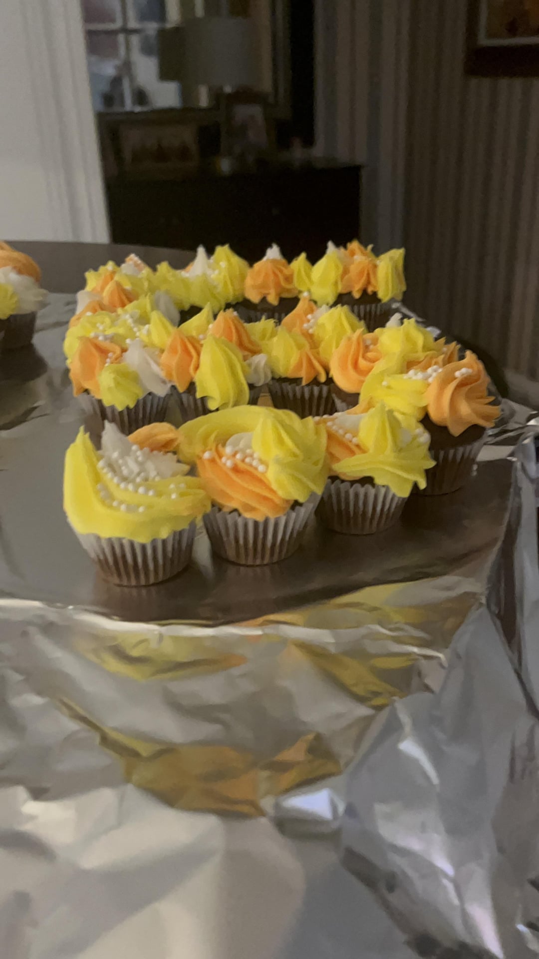 I made this for a New Year’s party I was having! I’m still fairly new to cake decorating, and I hope to learn more by taking classes and doing this professionally someday! The cupcakes were tiny and cute, and the batter was able to make 54 of them!