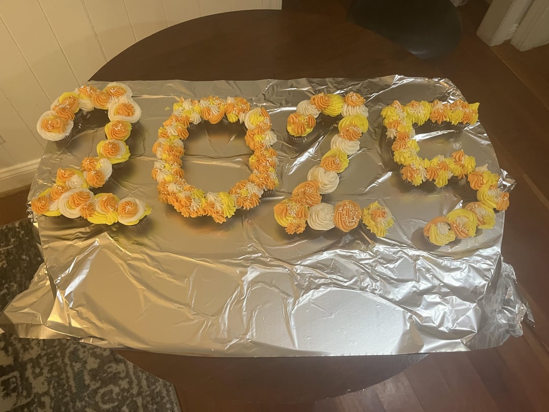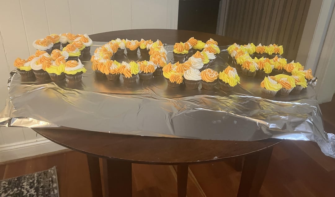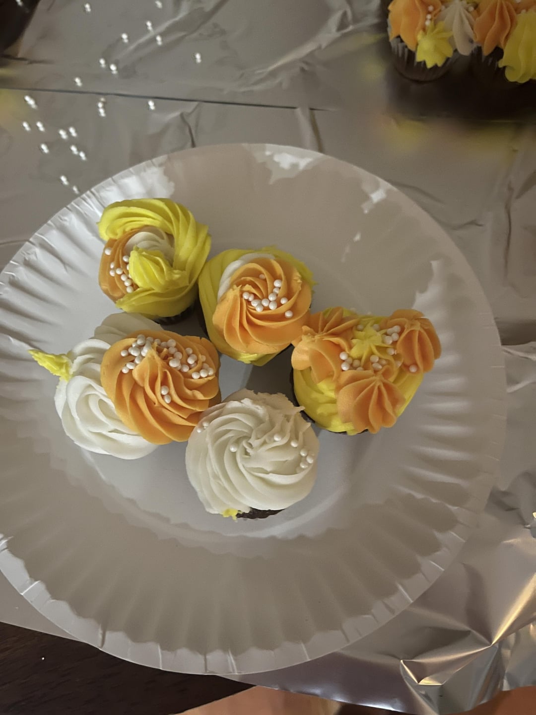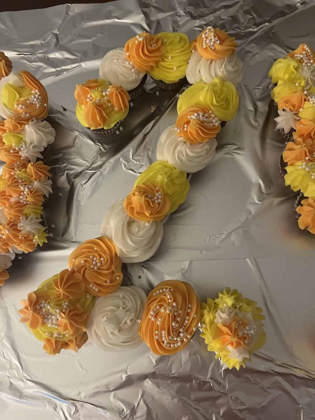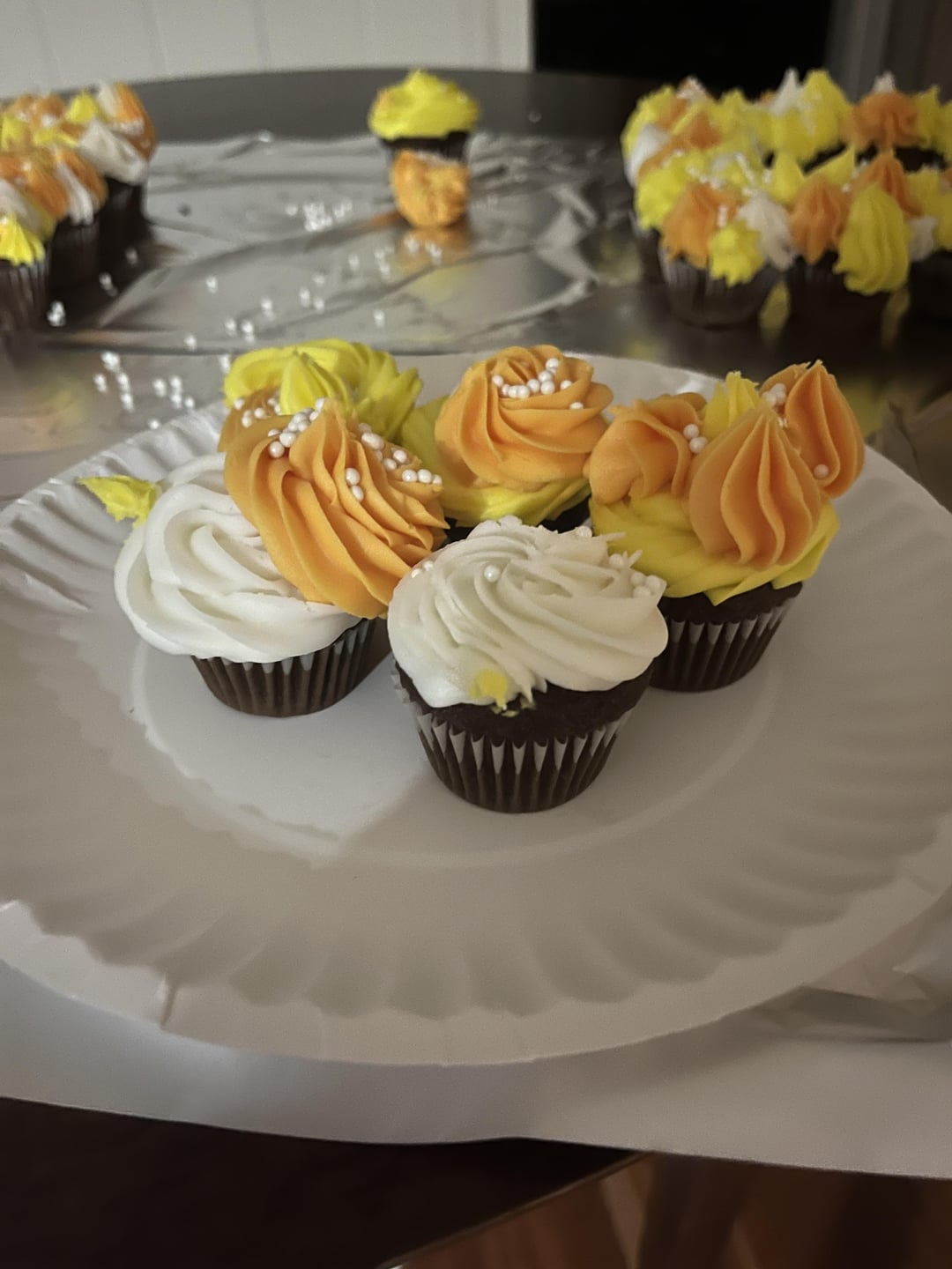I made this for a New Year’s party I was having! I’m still fairly new to cake decorating, and I hope to learn more by taking classes and doing this professionally someday! The cupcakes were tiny and cute, and the batter was able to make 54 of them!