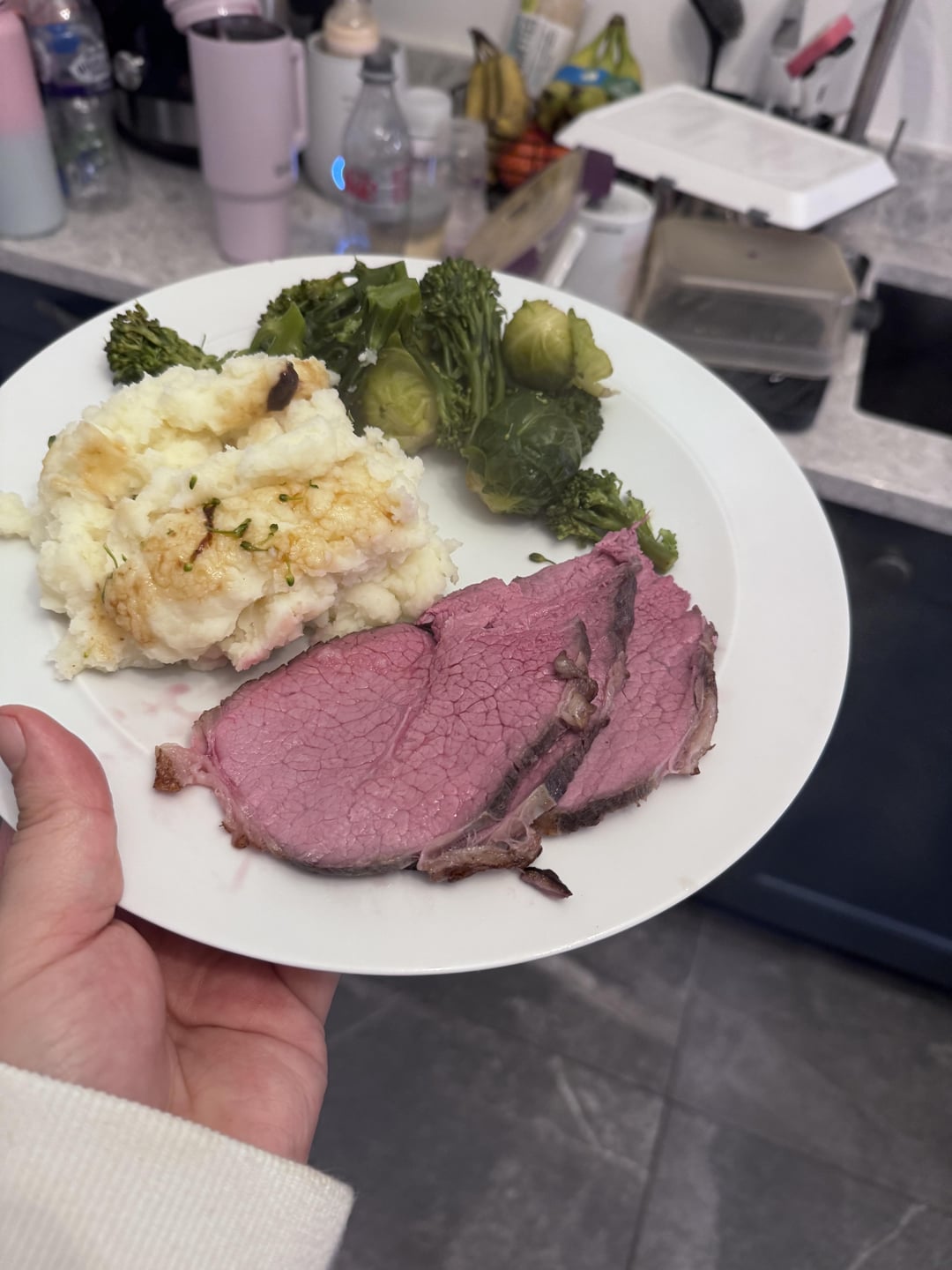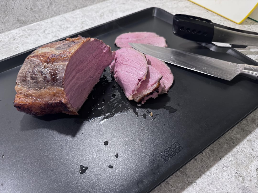 After reading mixed things about the virtues of cooking a top round in a sous vide, I tried it out yesterday. It’s cheap cut, which I normally find tough when roasting.