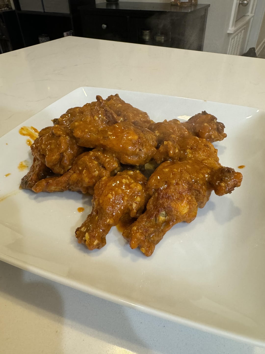 These wings had a nice crunch that you would expect from a deep fryer. The secret? Duck fat. I started by coating these wings in corn starch, garlic powder, salt, and pepper. I then placed them in the air fryer and coated them with duck fat spray. After about 30min around 400 and flipping, they emerged with a nice crust. Tossed them in homemade buffalo sauce which was fantastic. For $7, these wings were better than most restaurants.