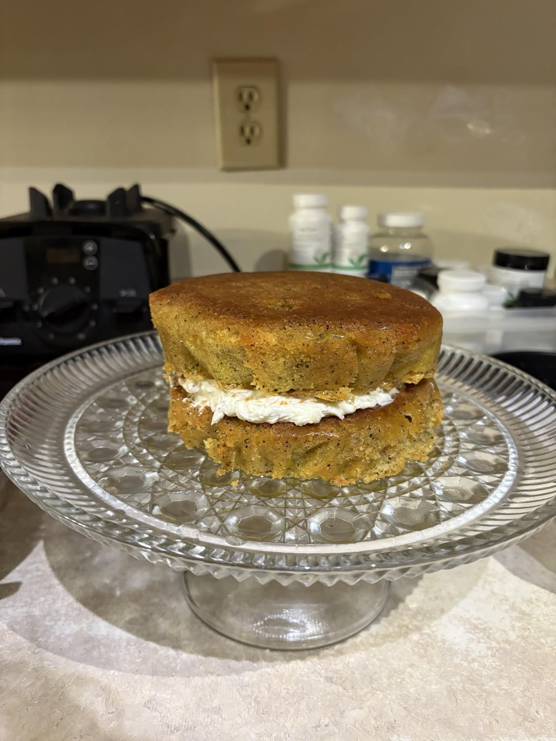 Tip for the filling: make a frosting dam. Pipe a wall of frosting around the edge of the cake layer. Then spread the filling inside. This will keep the filling from oozing out and help fill the gap between the layers. You can also trim the top of each cake layer if there is a significant dome. This will make it easier to stack.