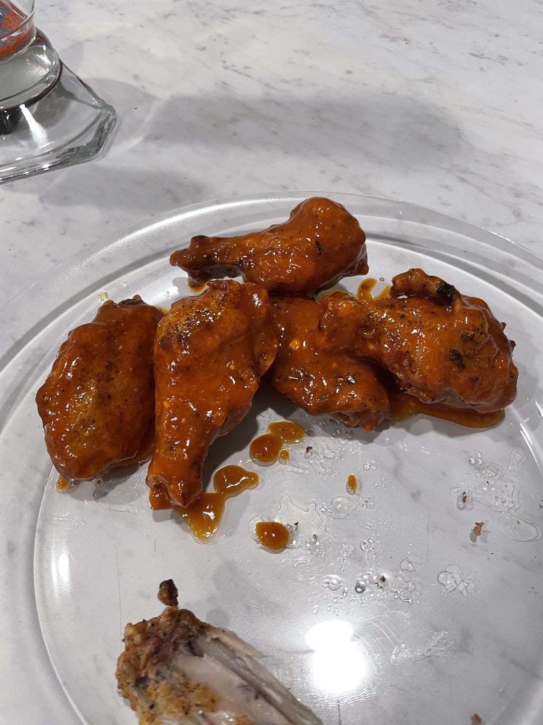Made a hot BBQ truffle sauce w/ parmesan cheese (it wasn’t too bad). Ranch for dipping sauce. I honestly was about to eat them all without any sauce that's how great it came out lol.