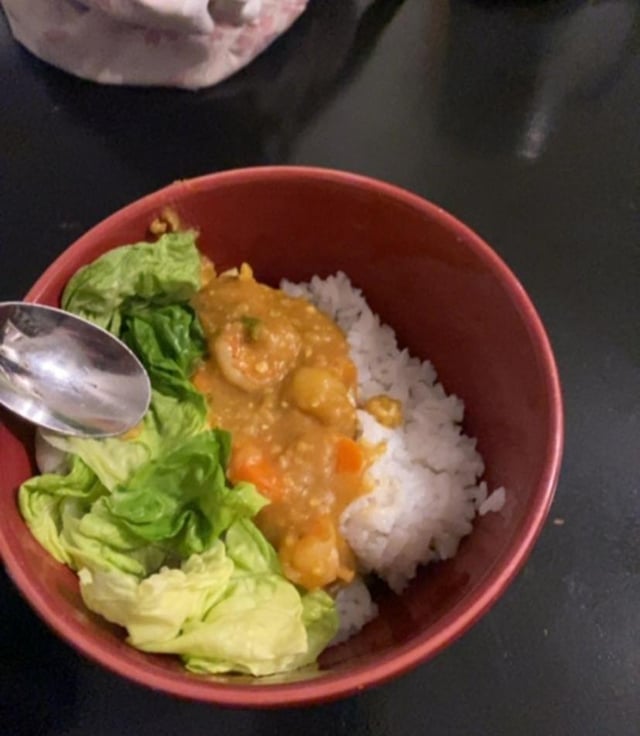 -golden curry rice packet (1/5 of a serving is 90 cals, he used all 5. Keep in mind that was for the whole pot and this is just one bowl of it. The curry is under the lettuce as well and i got slightly more after taking this pic because it wasn’t enough.)
