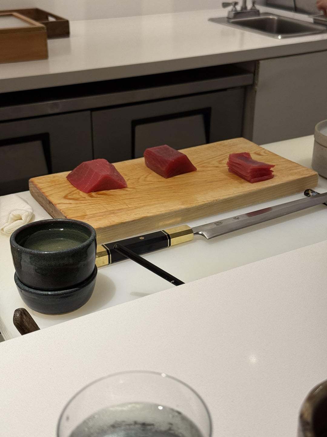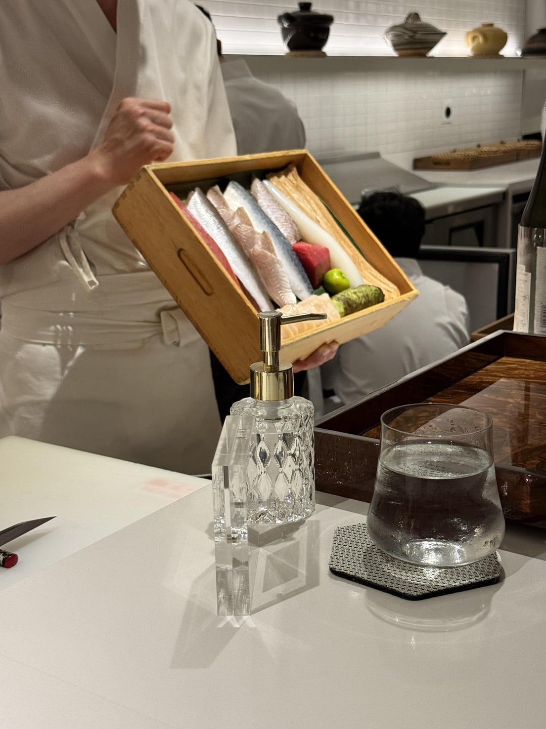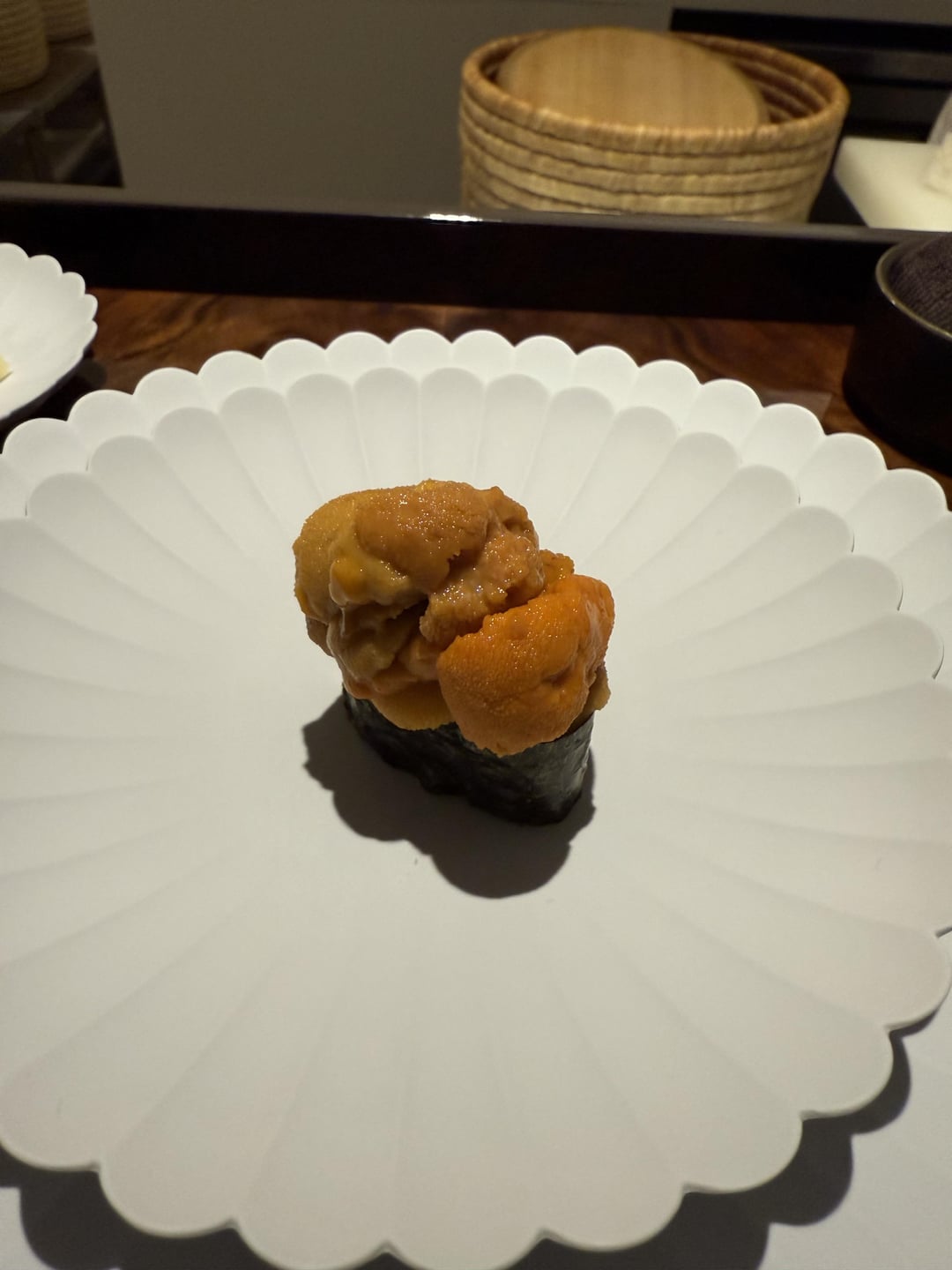 Service was great from the chefs—kind, funny, and really proud of their craft. There were two diners seated to my left that let their nigiri sit on their plates for 5-10min pretty much the whole meal…and the head chef was obviously a little annoyed, but the chef serving us did a great job pacing despite them. There was also a member of the support staff having some pretty unprofessional chats with the two diners but I guess I just played the part of audience that night 🍿.