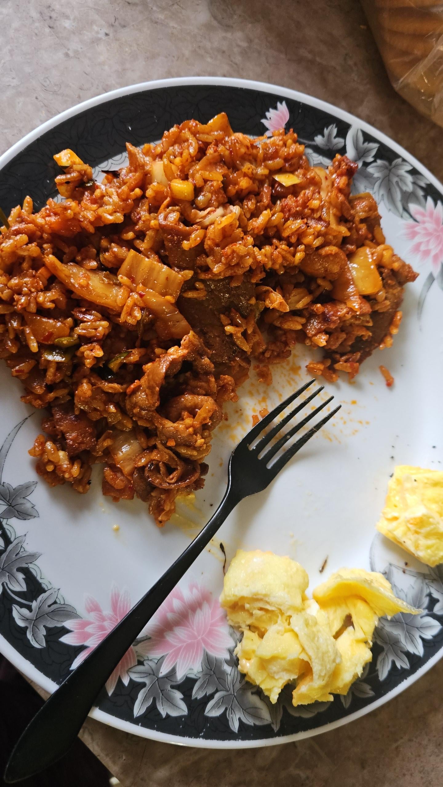 Kimchi fried rice and super spicy pork bulgogi with cheese omelet;)