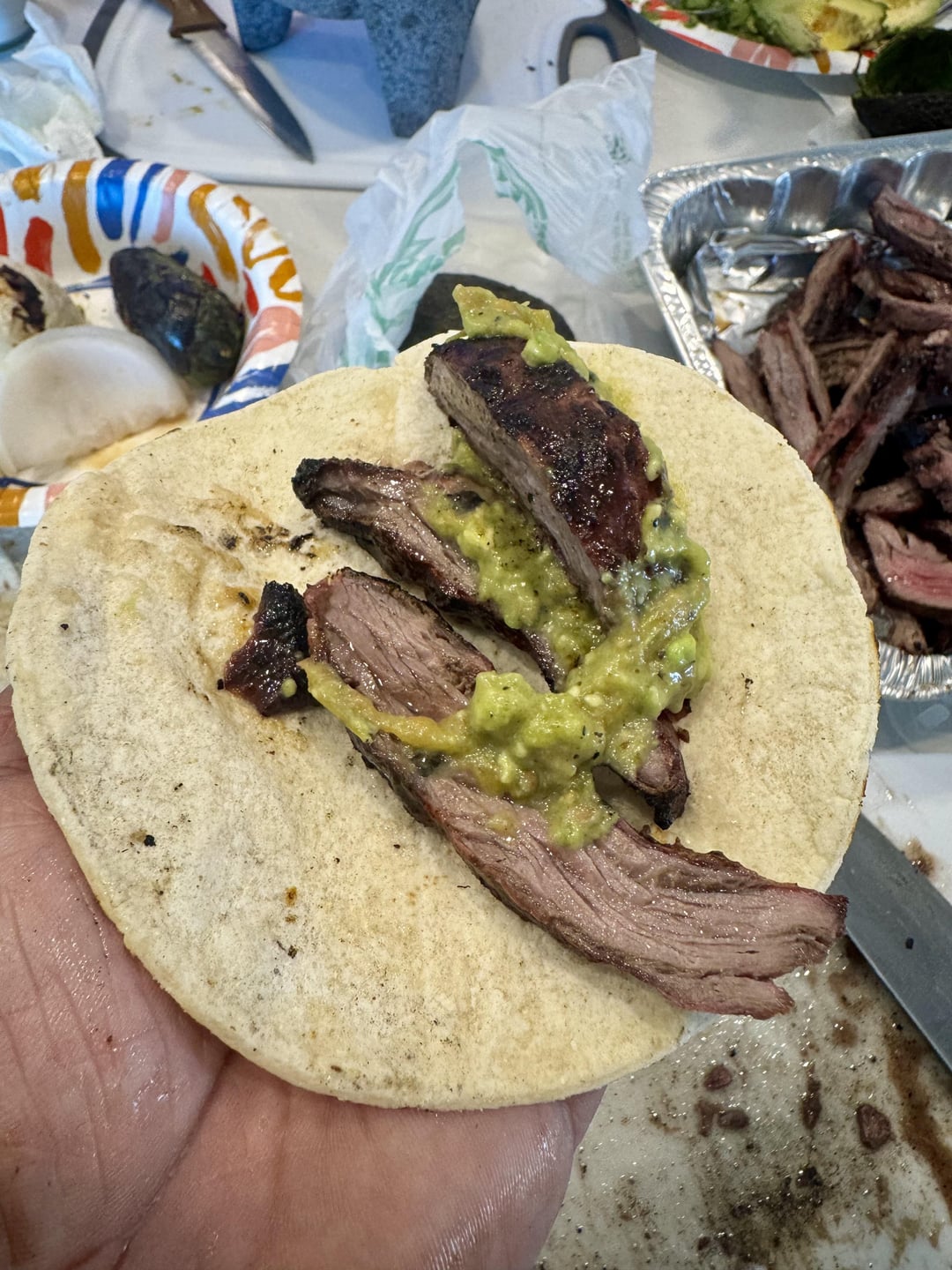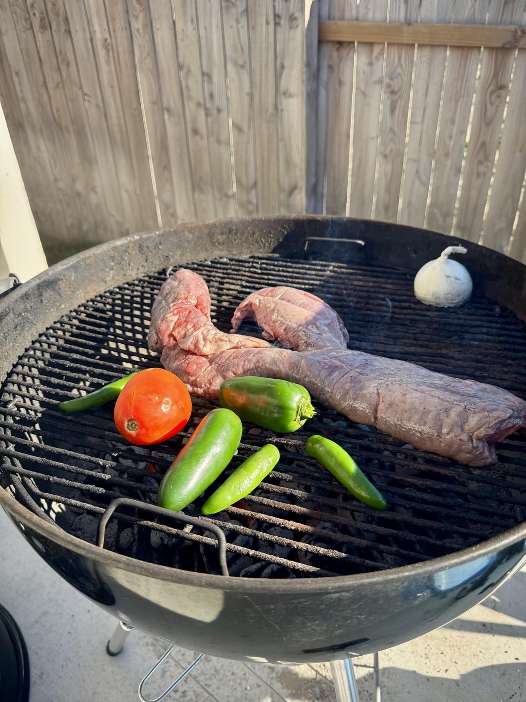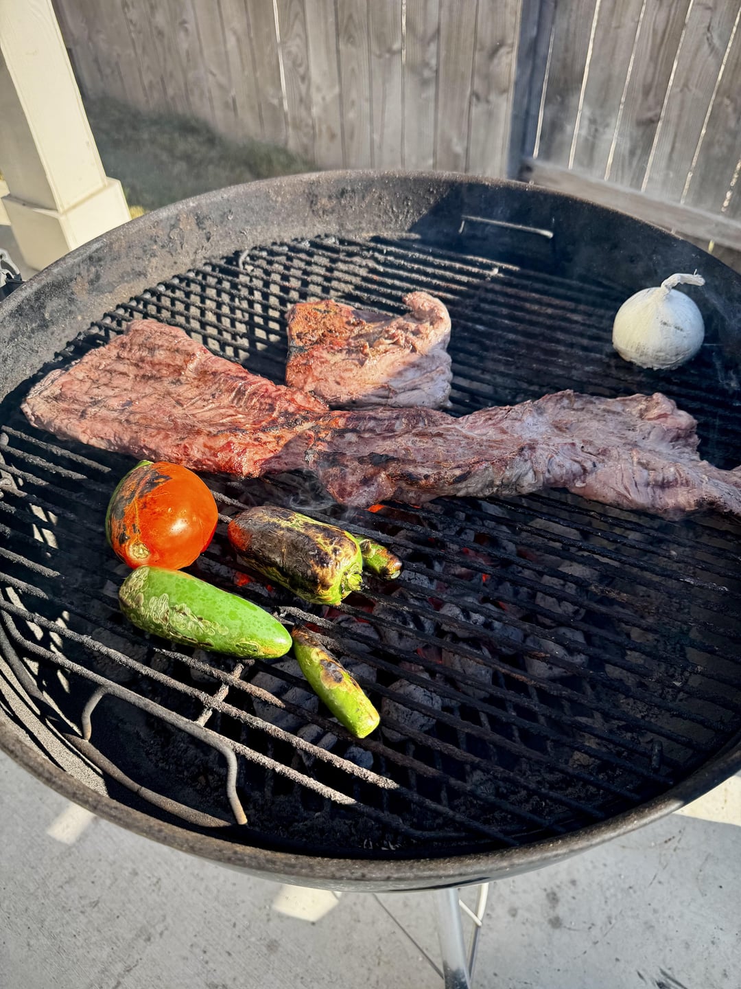 Had some family from Monterrey visiting over the holidays and they brought me packs of arrachera. Threw it right over the coals and made a salsa to go with it.